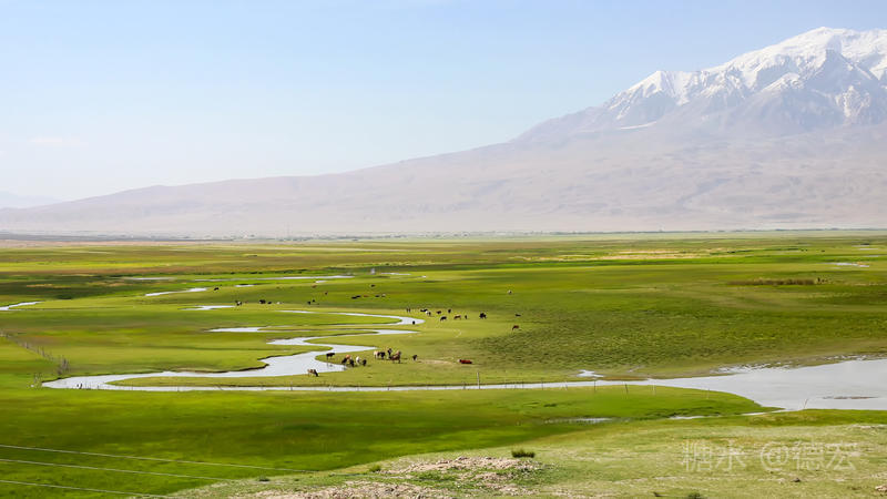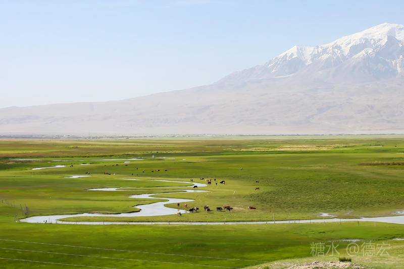 塔合曼号称“新疆之肾”,因为它不受河谷底部的限制,融化的冰川雪水在这里随机旋转,形成九曲十八弯,草甸、河曲、雪山、花海等多种景观。舒缓蔓延的草甸宛如一只巨大的碧绿玉盘,托起了圣洁的雪山。