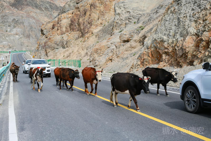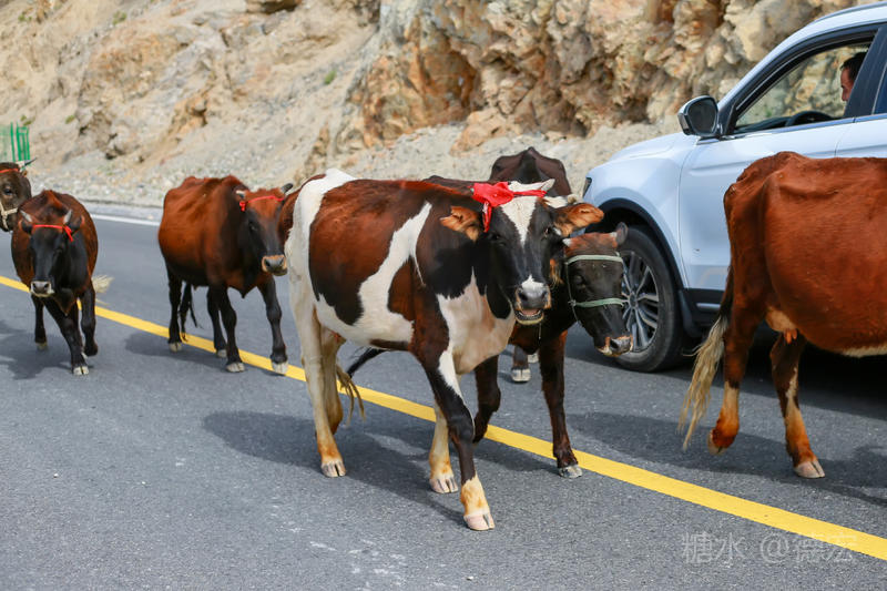 正准备再次启程时,迎面走来一支牛队。