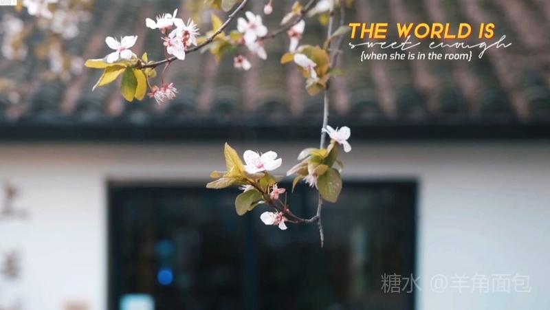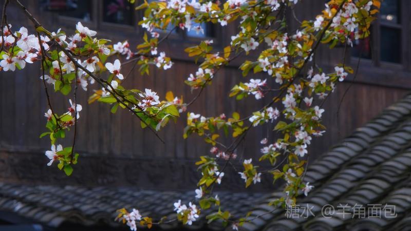 我好喜欢红叶李花开的时候,花儿铺盖在青瓦上。