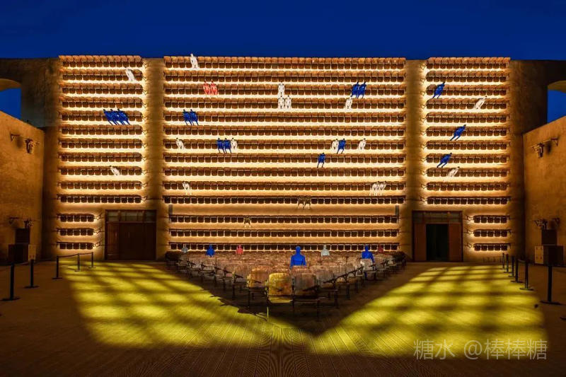 入夜,黄土夯墙成为巨幅幕墙(局部)