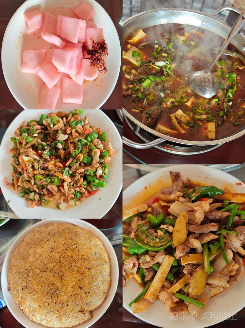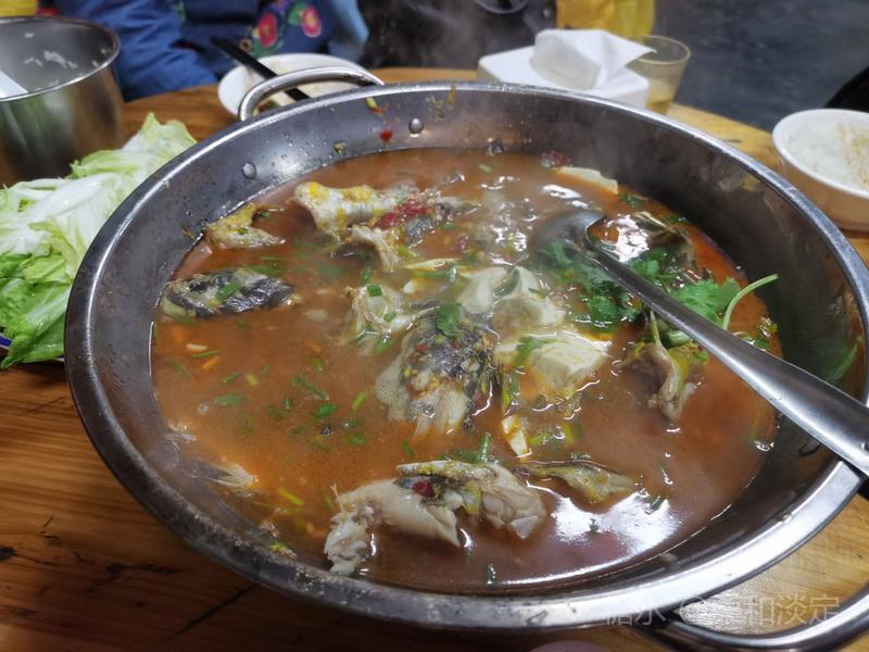 在这个地方的年夜餐桌上,有一道菜,叫“一锅煮三省”,据说能将湘、黔、渝三个省市的风味,复合于一锅。当晚就品尝这里的一锅煮三省,实际上就是火锅鱼。