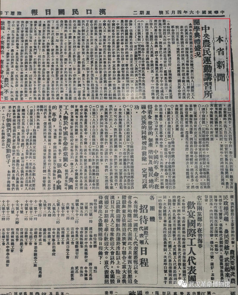 《汉口民国日报》报道武昌农讲所开学典礼盛况(网络图)