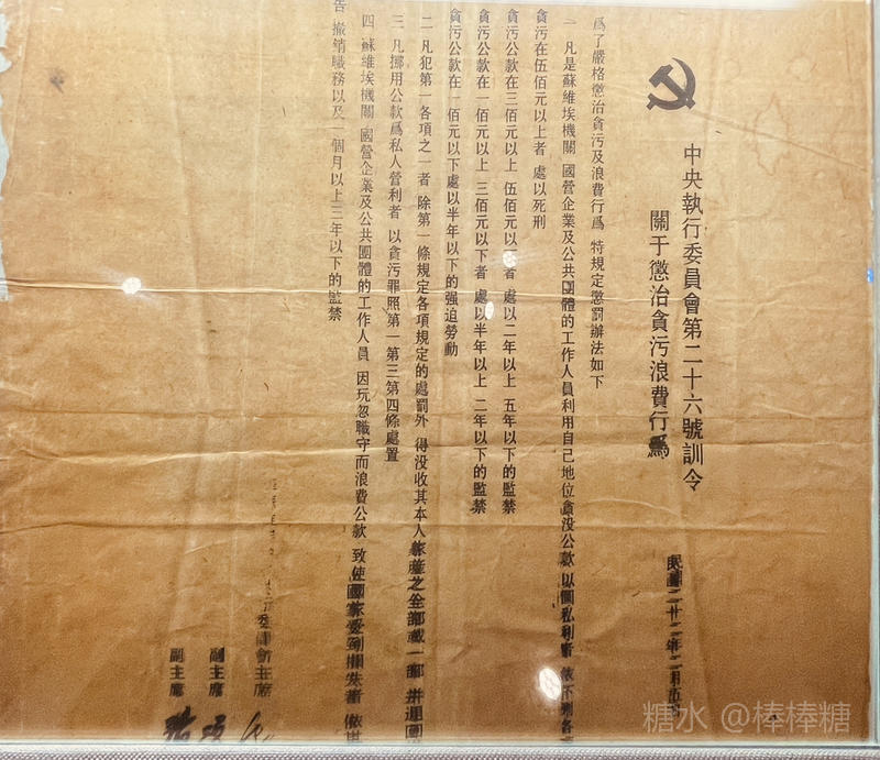 1933年12月15日中央执行委员会领布的第一个惩治腐败法令《关于惩治贪污浪费行为》