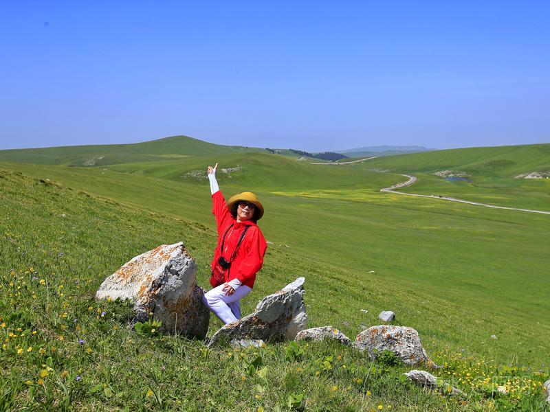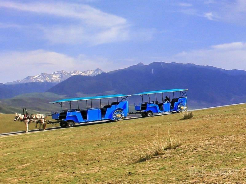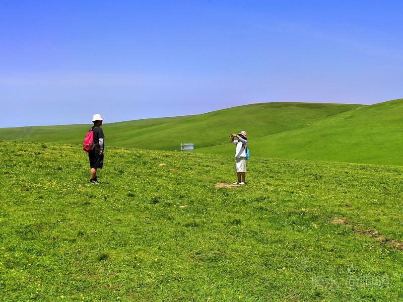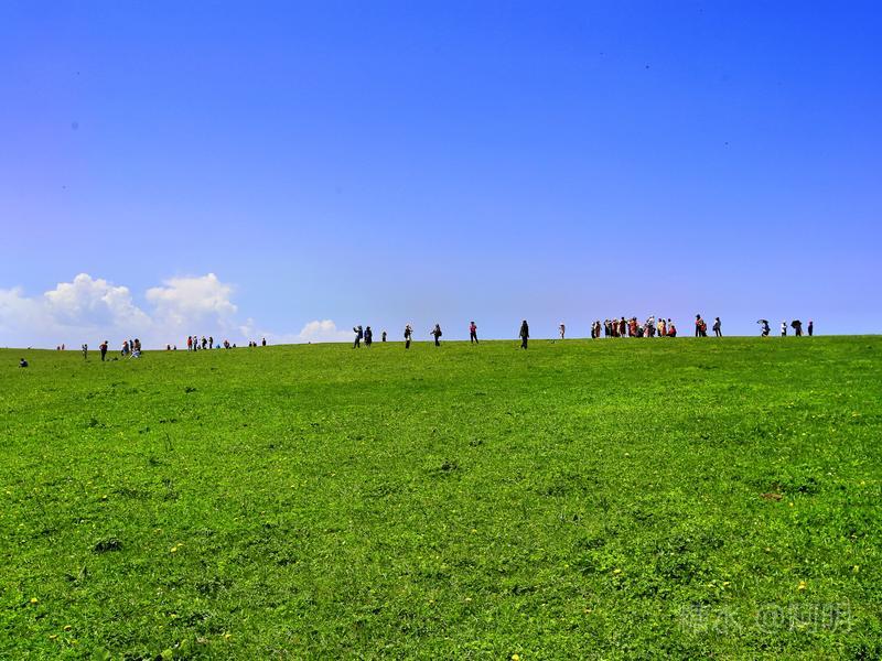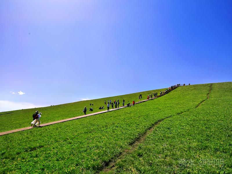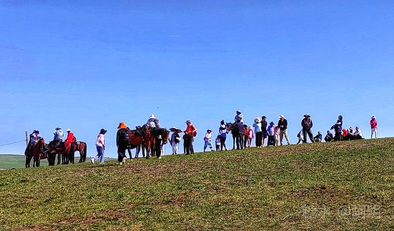 一下景交车,远远望见山脊上全是密匝匝的游客,好奇心趋使我赶紧也爬上去,原来站在这里,可以一览群山起伏宛如层层波浪,还能看到下方的军马场!
