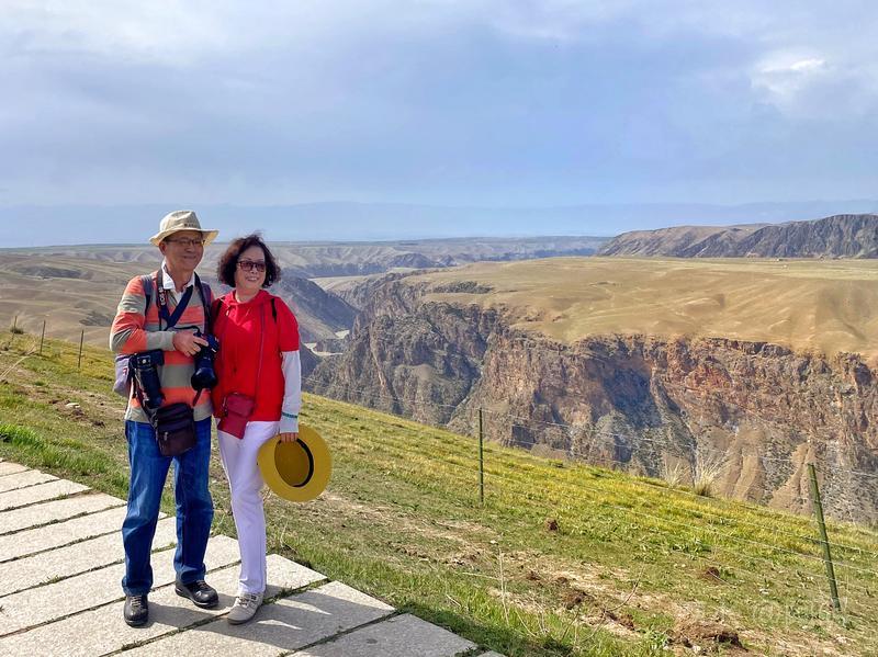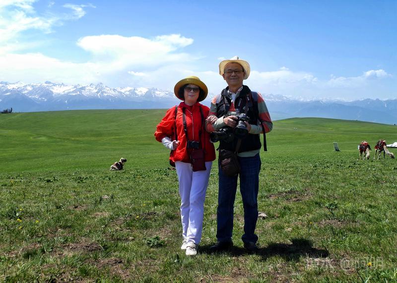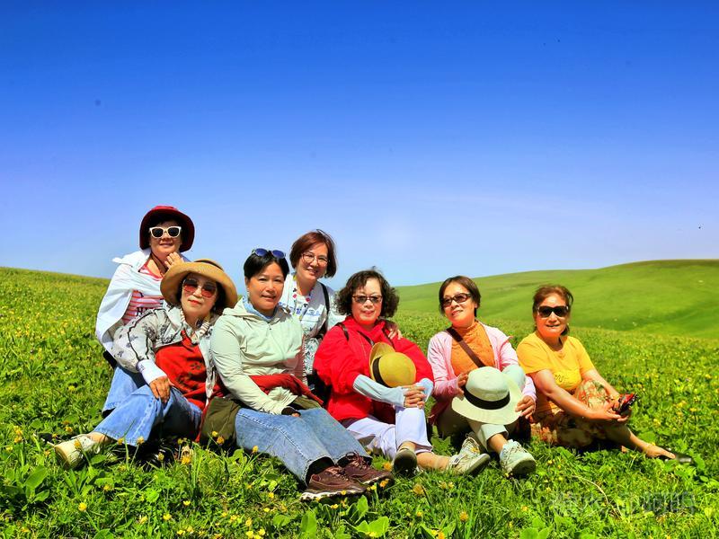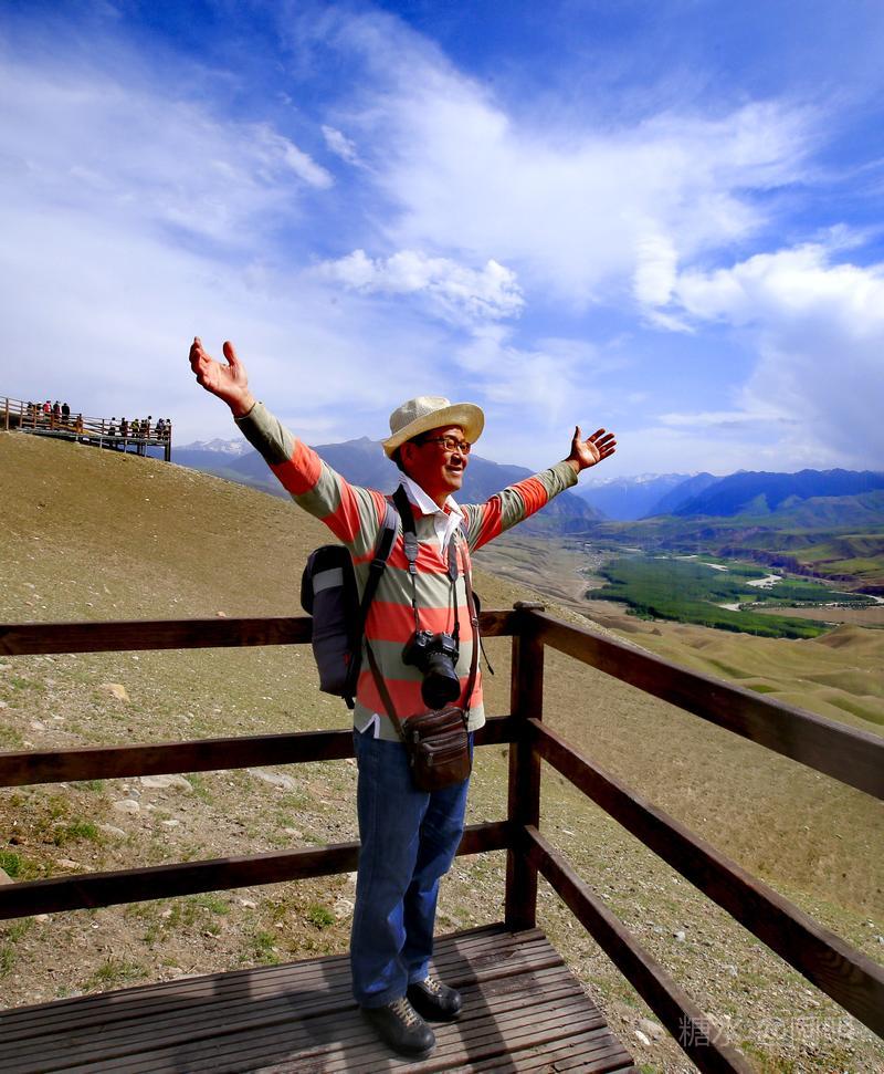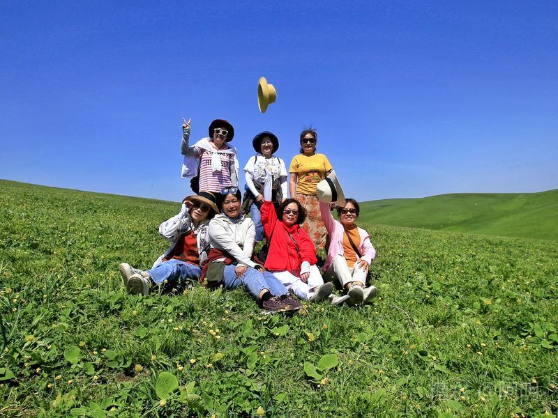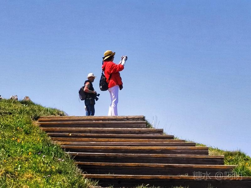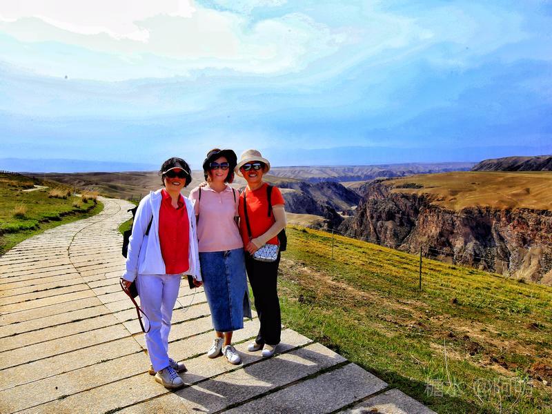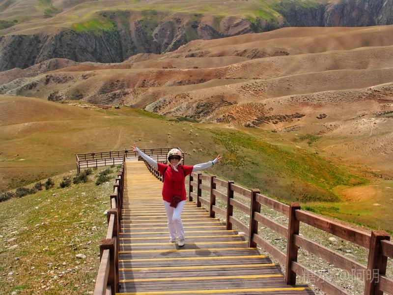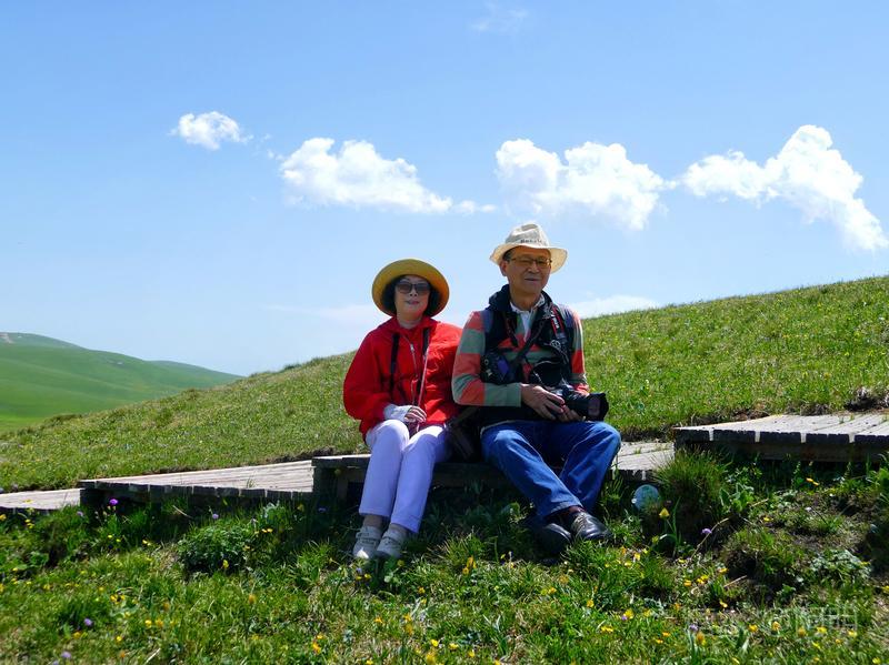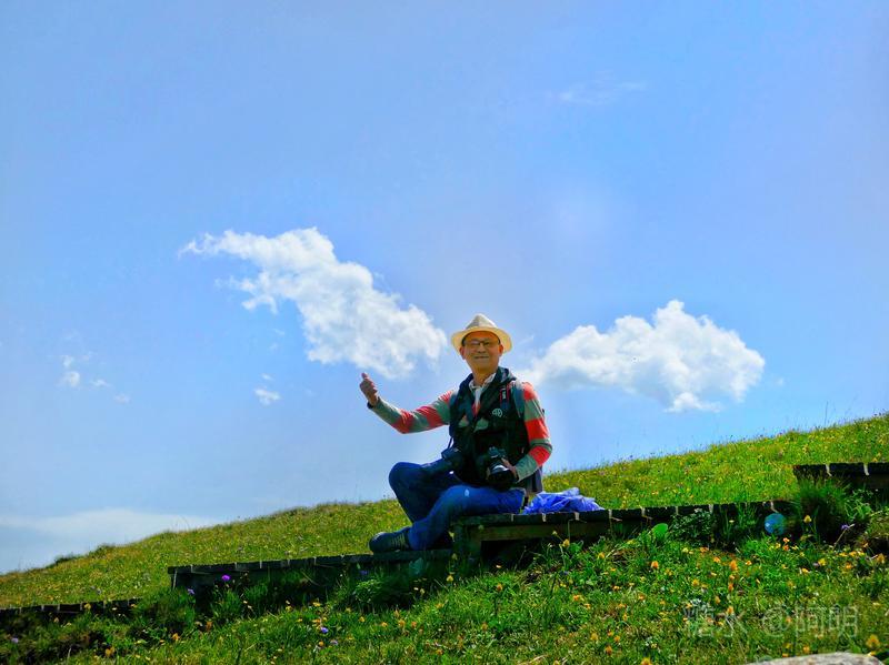 老戎乐哈哈地坐在栈道上拍着草原,拍着嘻嘻哈哈的我们,培红突然发现“新大陆”,又惊又喜地欢呼:“哇,老戎长翅膀啦”,抬头才发现,连白云也來凑热闹啦!🤭