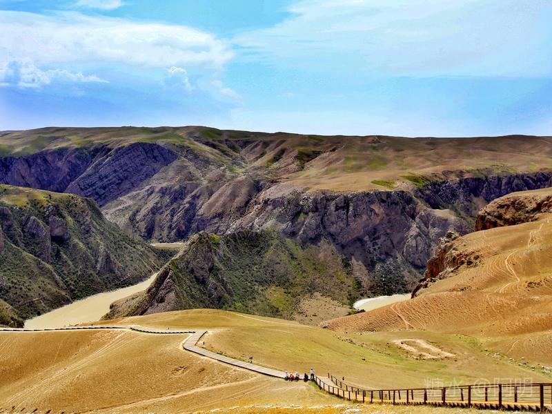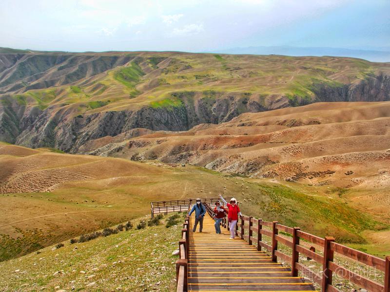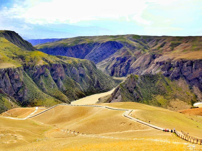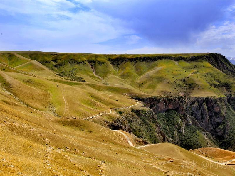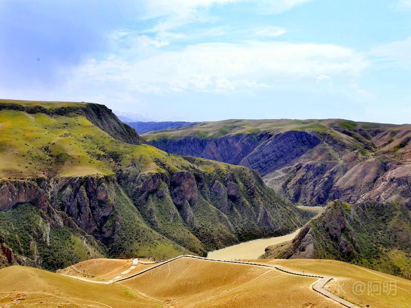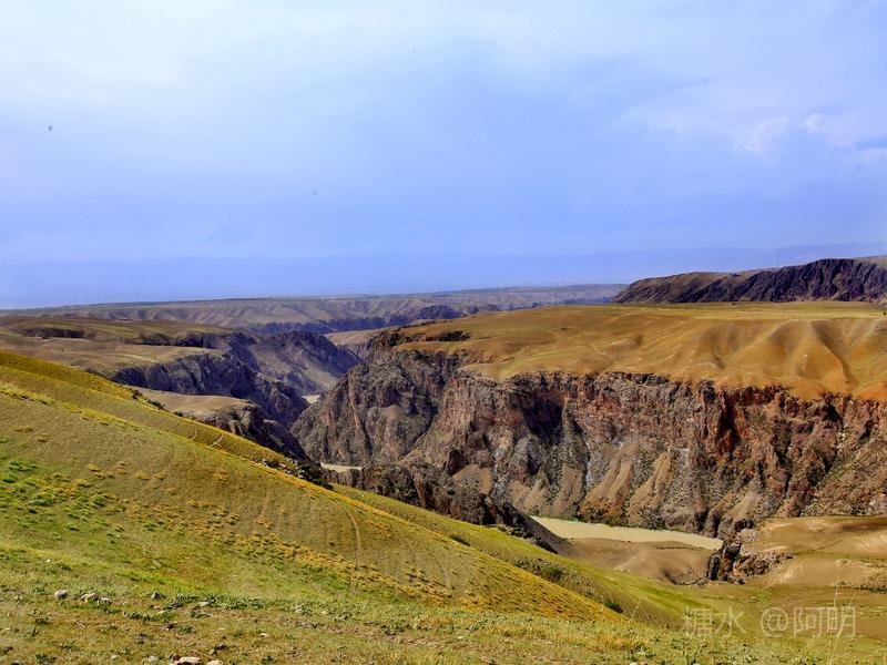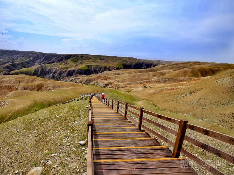 著名的“人体草原”景观,在阔克苏大峡谷内,它连接着景区内的九曲十八弯和鳄鱼湾两个景点。