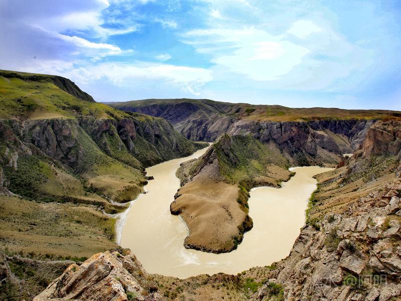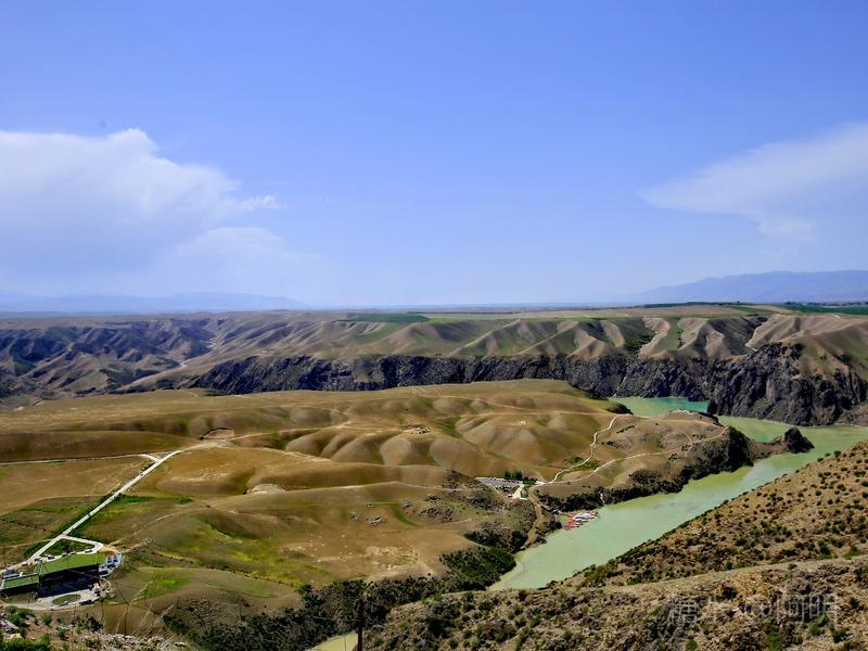 九曲十八湾,位于阔克苏大峡谷景区,阔克苏河在阔克苏大峡谷宽广的谷底曲折流转,如蛟龙过境迂回向前,形成南北长约5600余米、东西宽约2000余米的九曲十八弯。👇