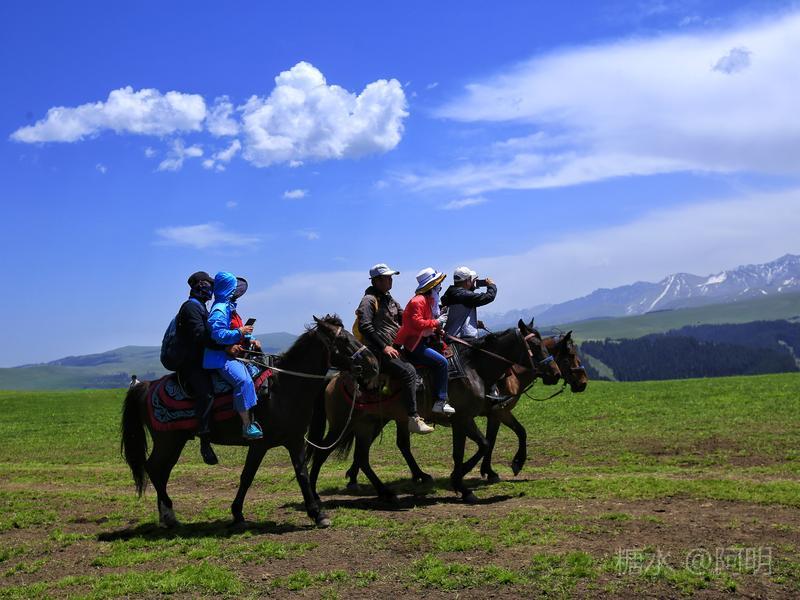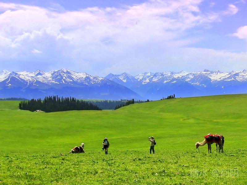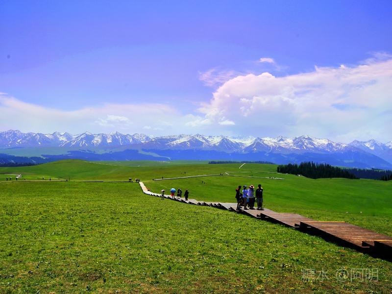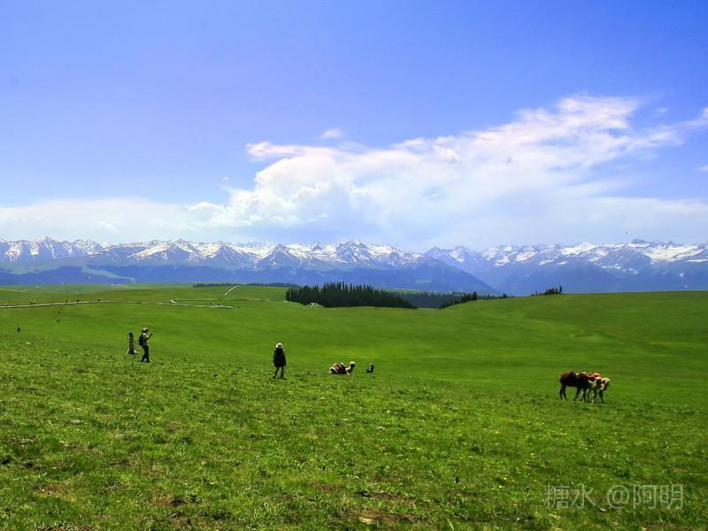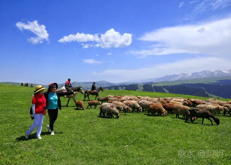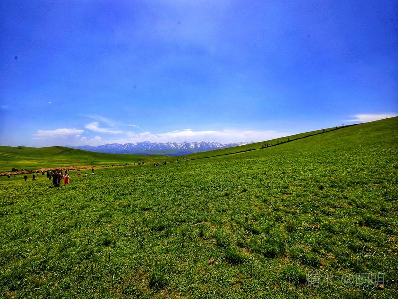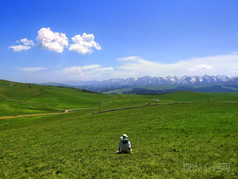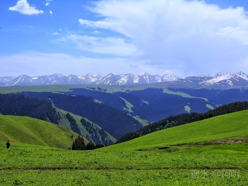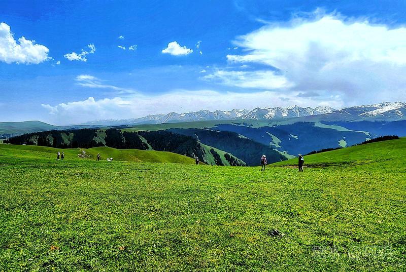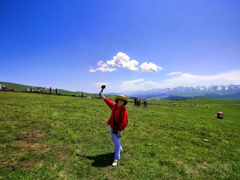 湛蓝天空,白云漂浮,森林草原,雪山峡谷,奔跑的孩子、拍照的游人,所有元素构成了一幅人与自然美好和谐的画卷!