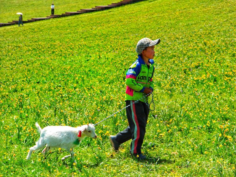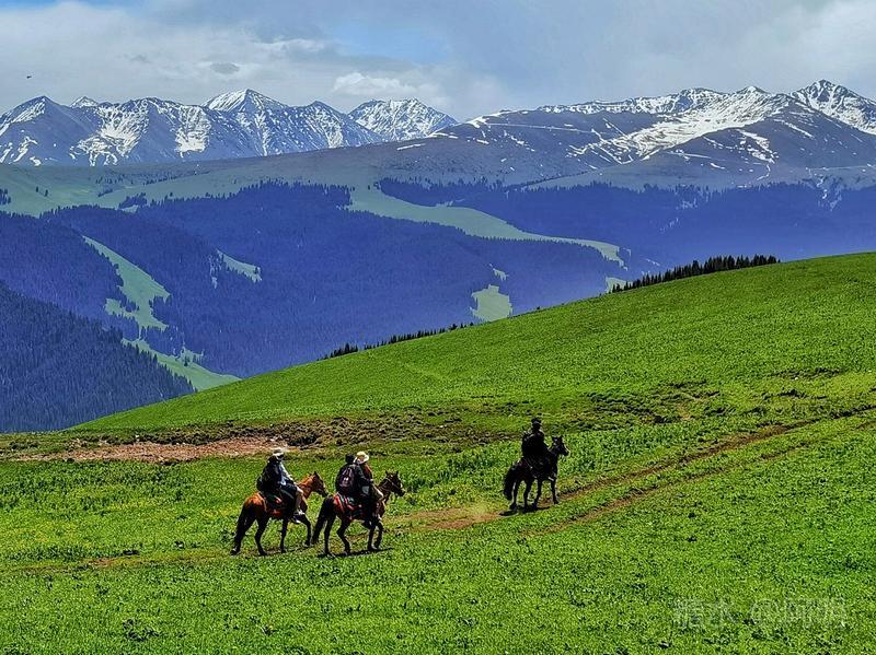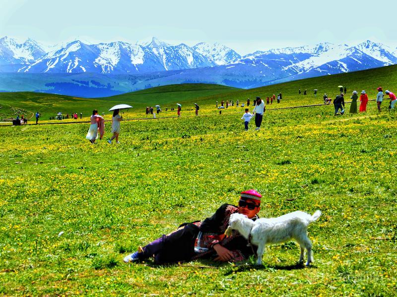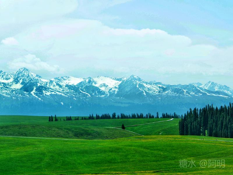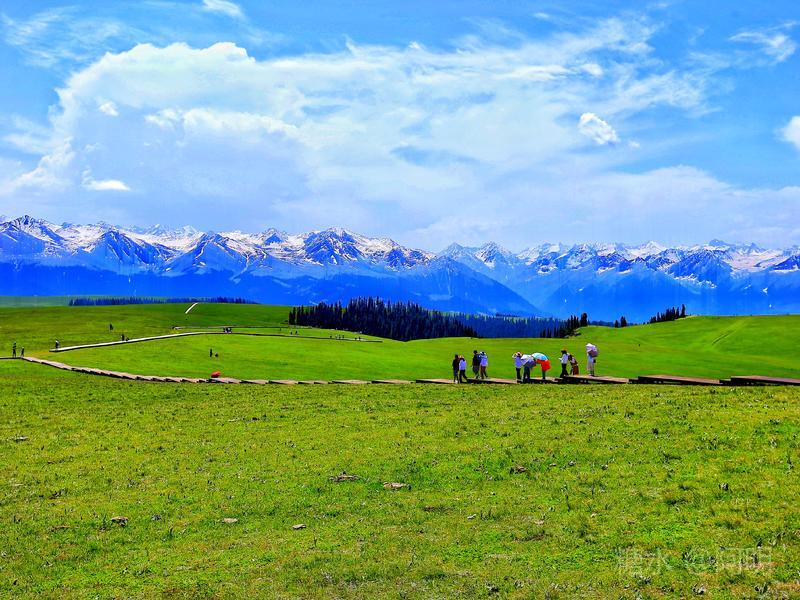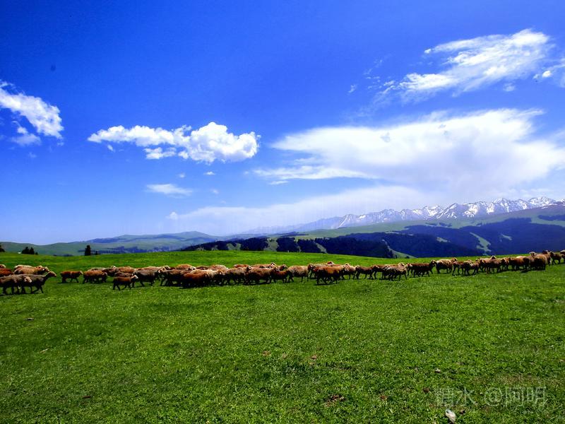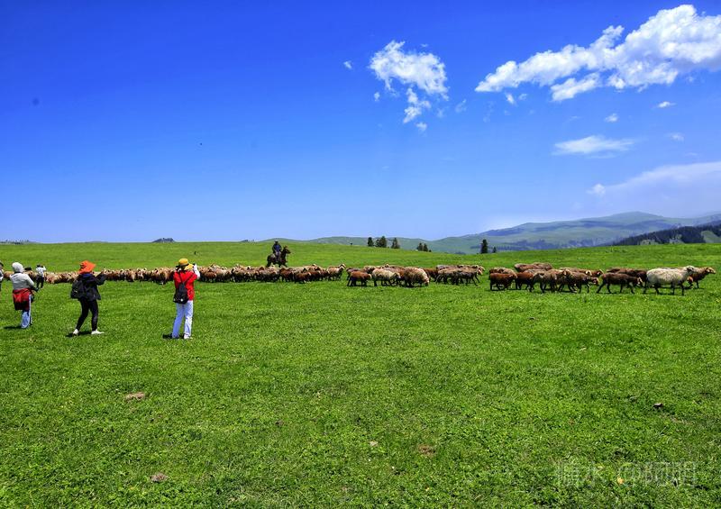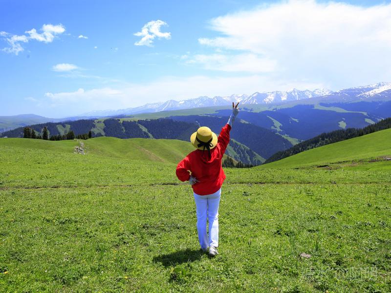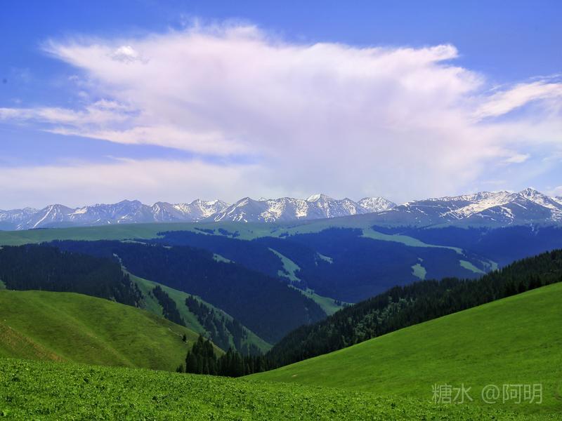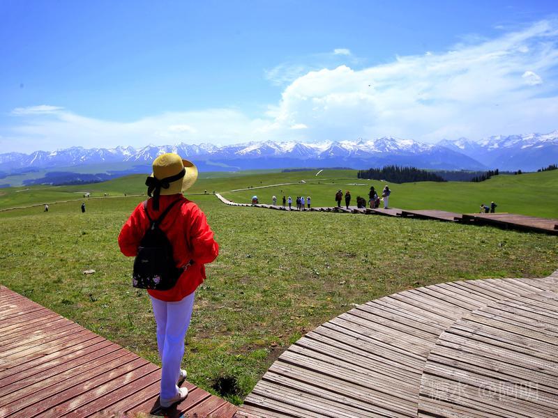 湛蓝天空,白云漂浮,森林草原,雪山峡谷,奔跑的孩子、拍照的游人,所有元素构成了一幅人与自然美好和谐的画卷!