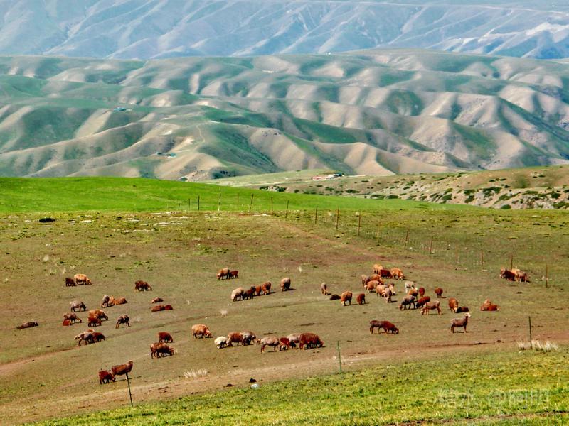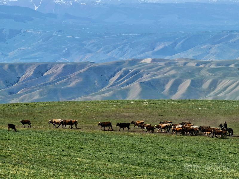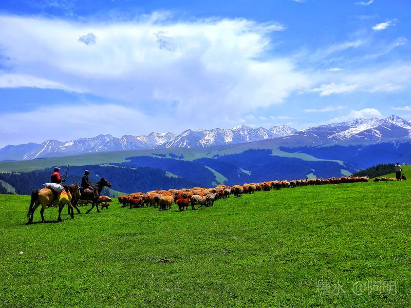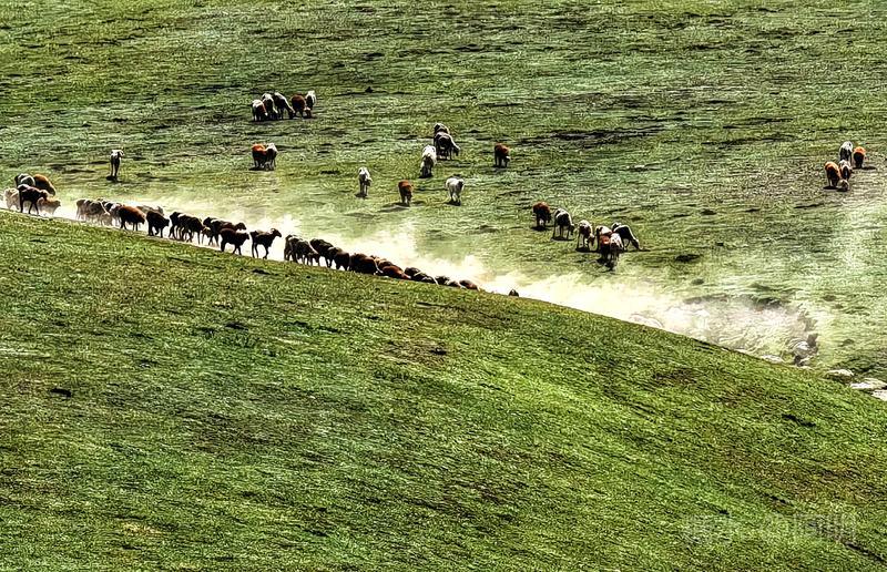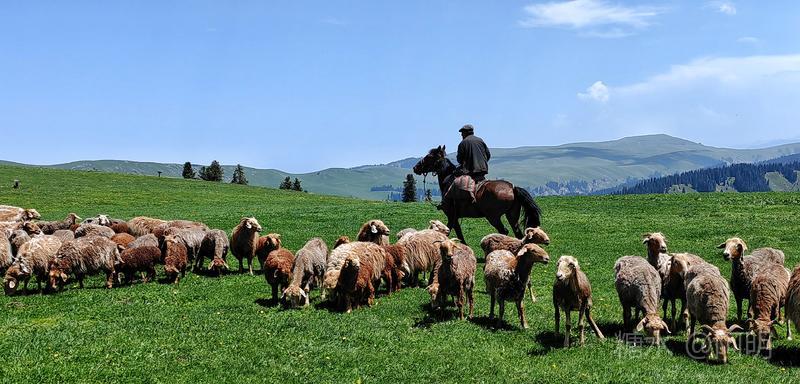 原来喀拉峻大草原拥有100多种优质牧草,每年6月中旬到9月中旬,特克斯、巩留等县约20万头牲畜都会转场来到这里避暑抓膘。就连巩乃斯种羊场娇贵的种羊,也以此地为消夏之处。