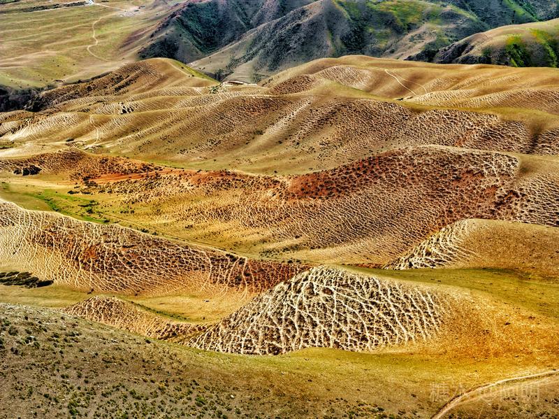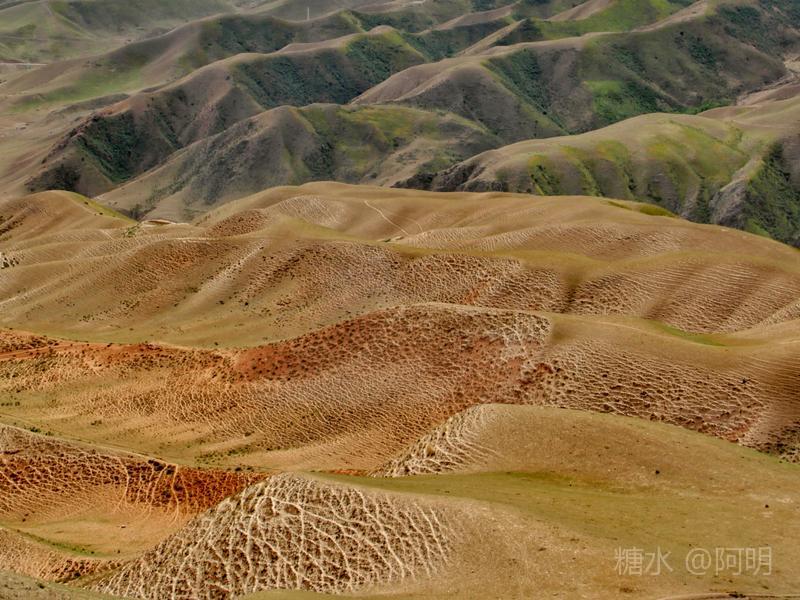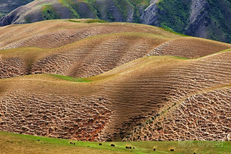 今年喀拉峻遭遇干旱,往年婀娜多姿迷人的人体草原也惨遭換肤,一直走到谷底观景台,看到的也是披上了“哈密瓜皮肤”的人体草原,非常奇特令人惊愕!🧐