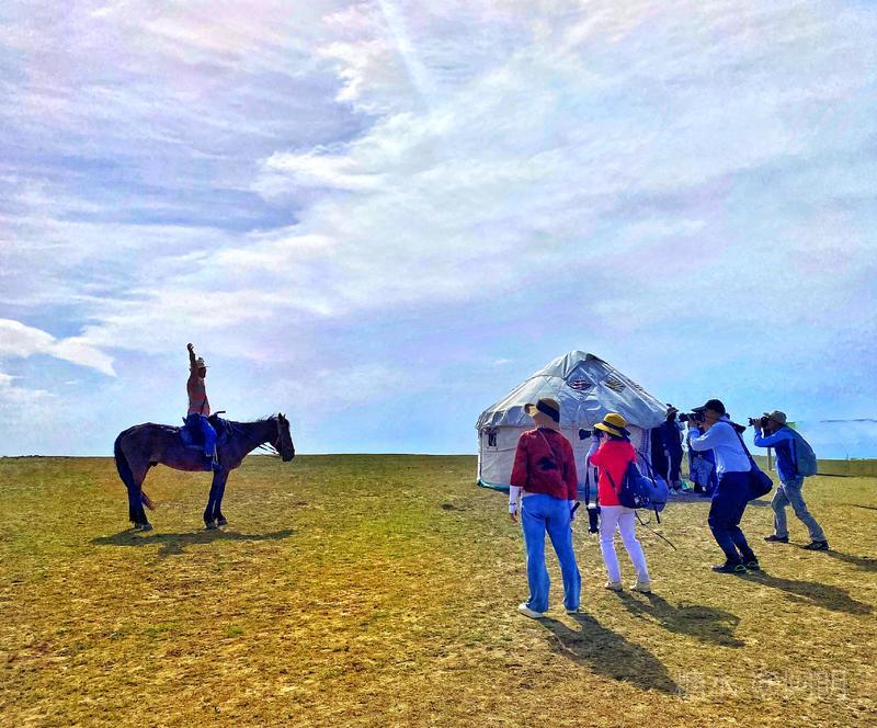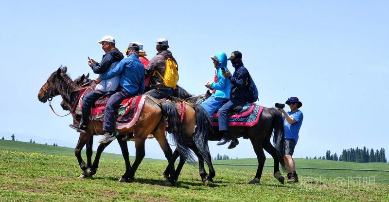 戎哥兴致勃勃骑马当模特,朋友们一个个拍得好起劲!😂✌