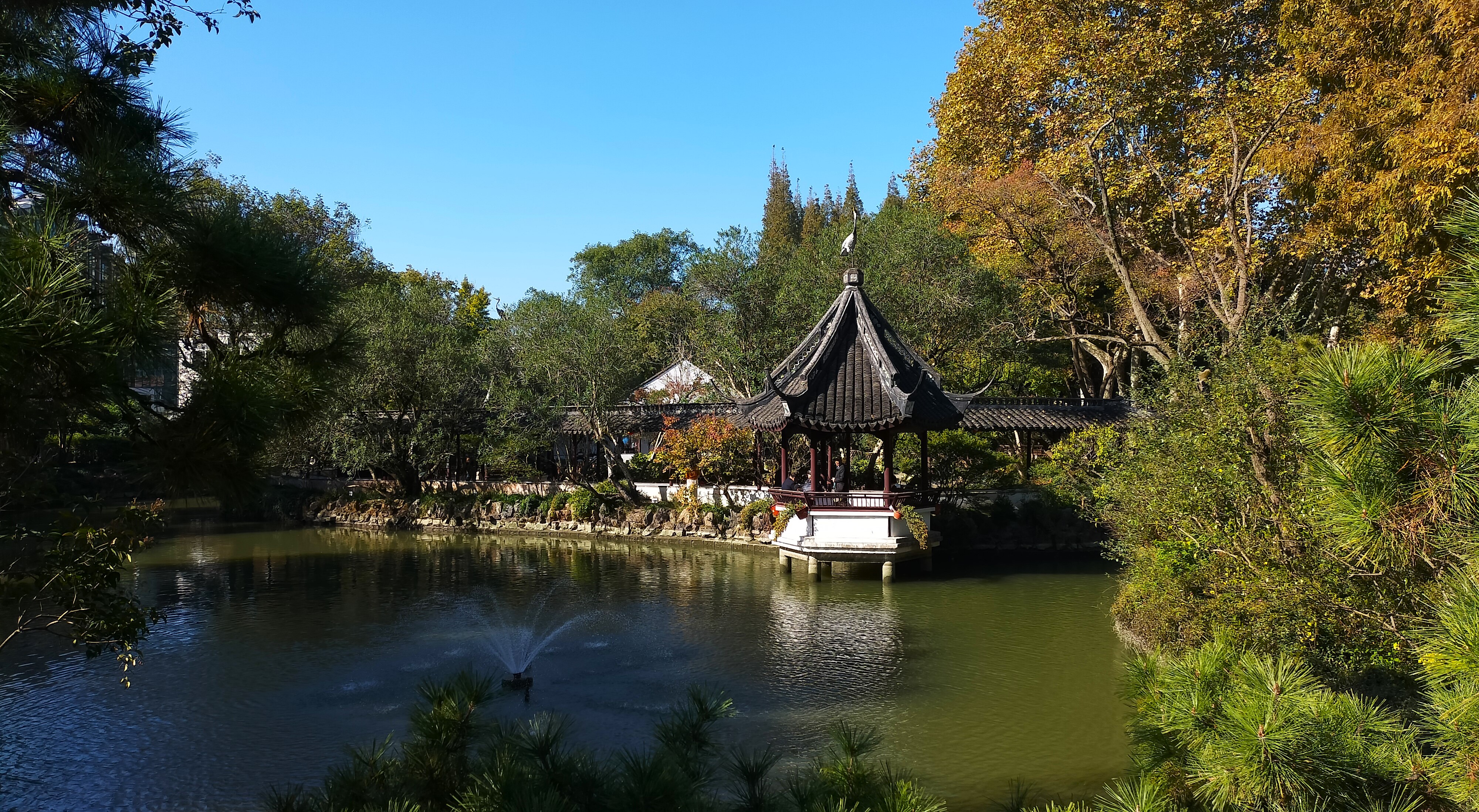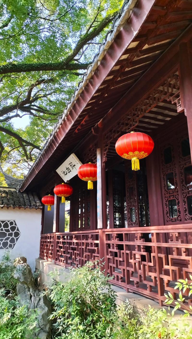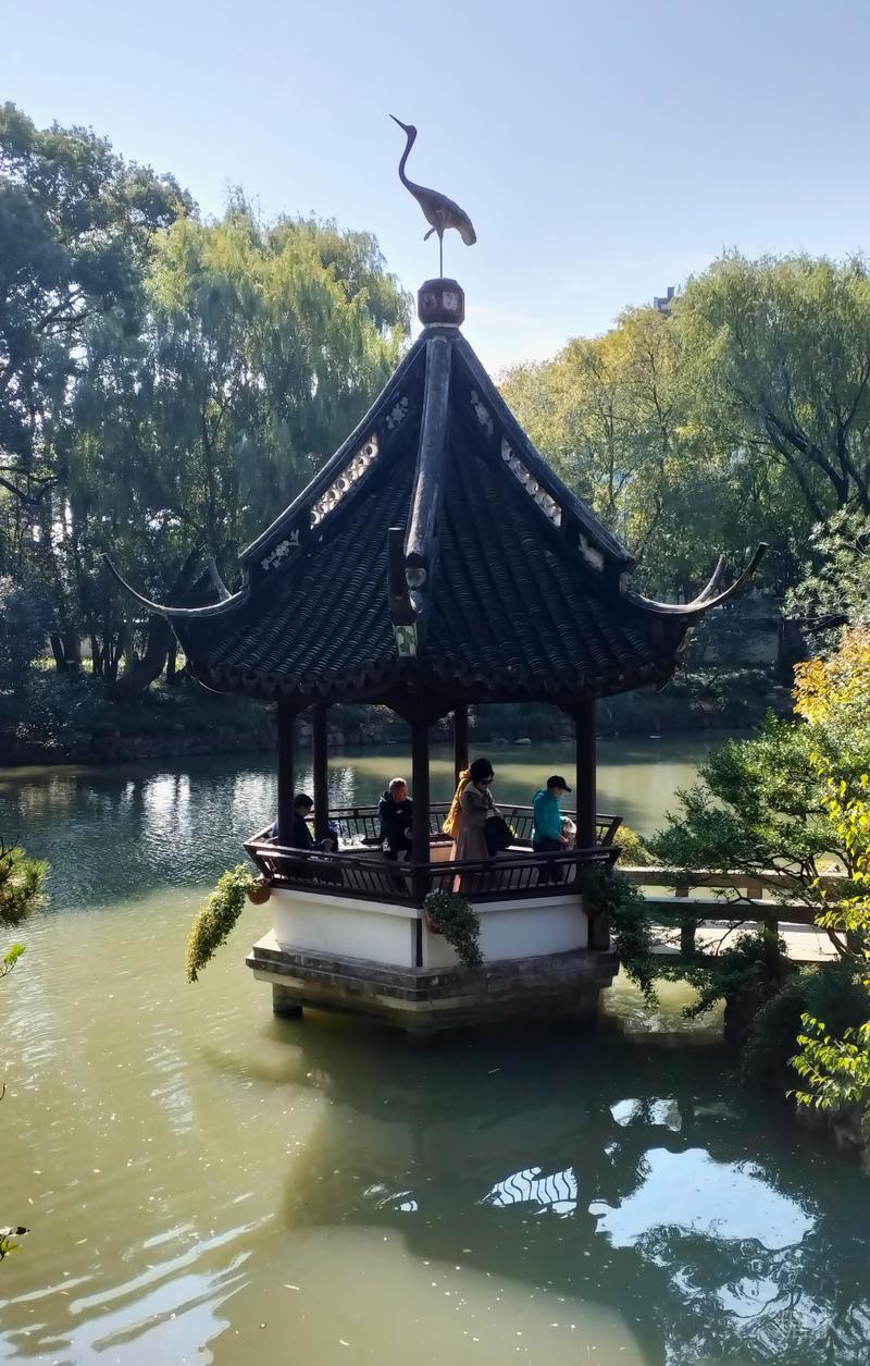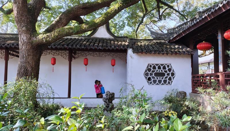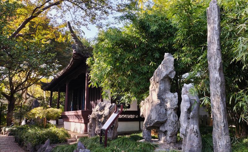 深秋的醉白池, 依然葱葱郁郁,古木参天。 沐浴在秋日的暖阳里。 堂、亭、舫、榭等古建筑, 历尽岁月沧桑, 保持着明、清江南园林风貌。