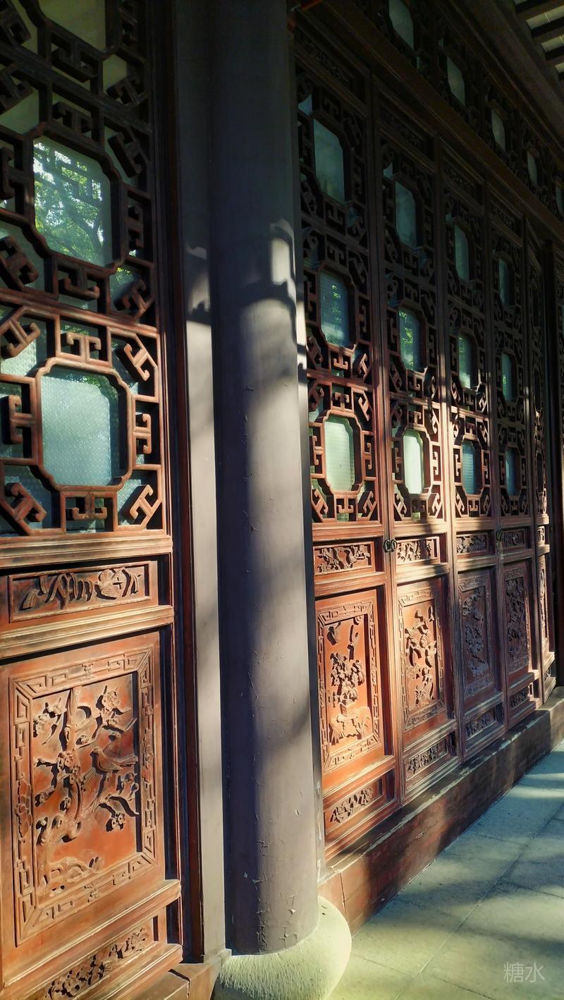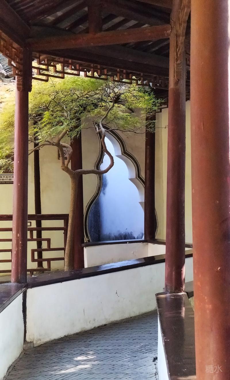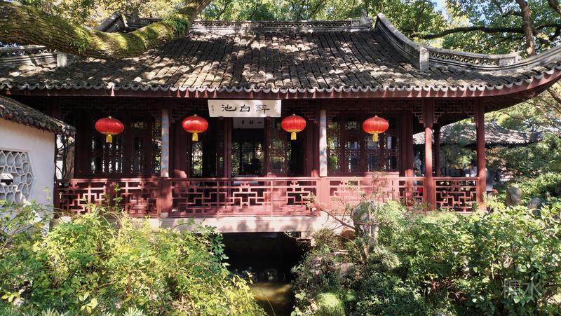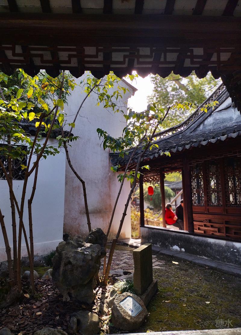 内园醉白池, 是整座公园的精华所在。 以一泓碧水为中心, 环池三面皆有曲廊亭榭。 依水而筑,曲径通幽, 无论晴雨均可凭栏赏景。 此时的醉白池, 池内荷花繁华落尽, 摇曳的残荷依然风韵犹在。 园内小桥流水,亭台楼阁, 古树、竹林、假山一应俱全。