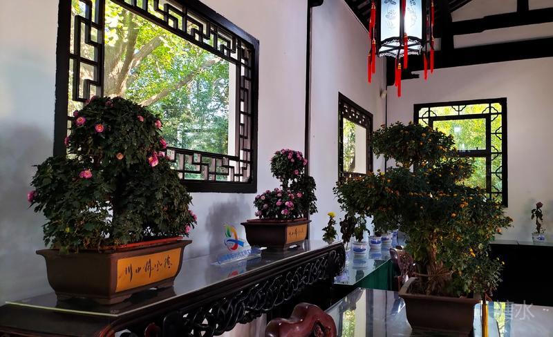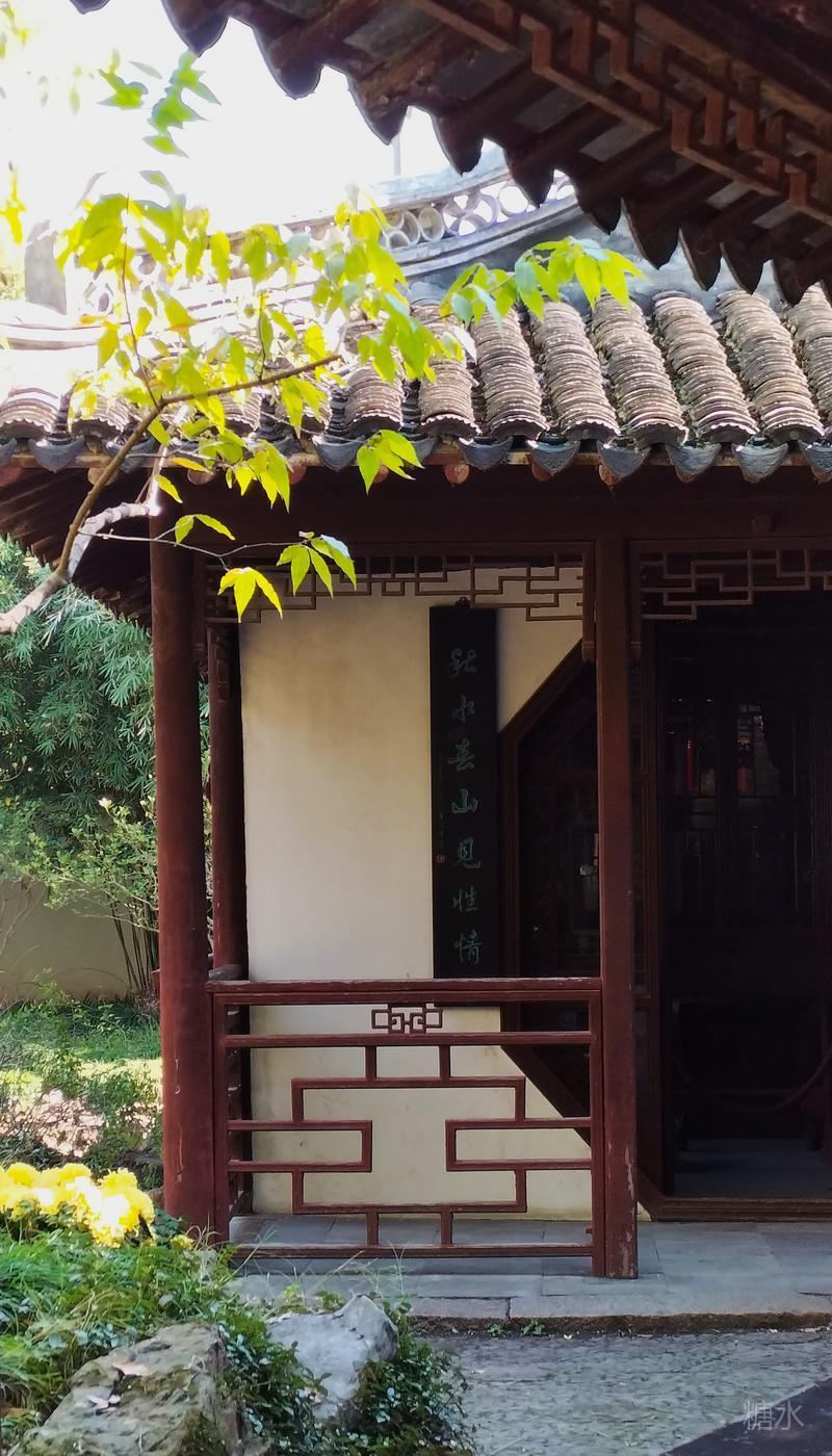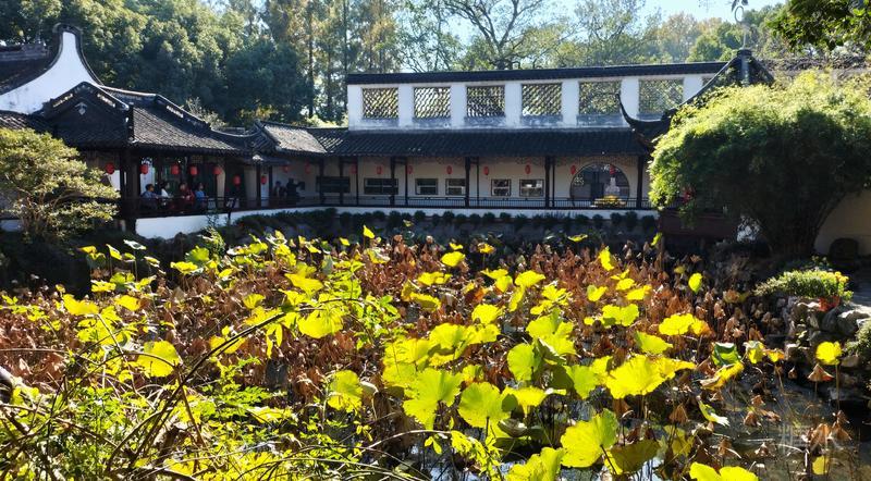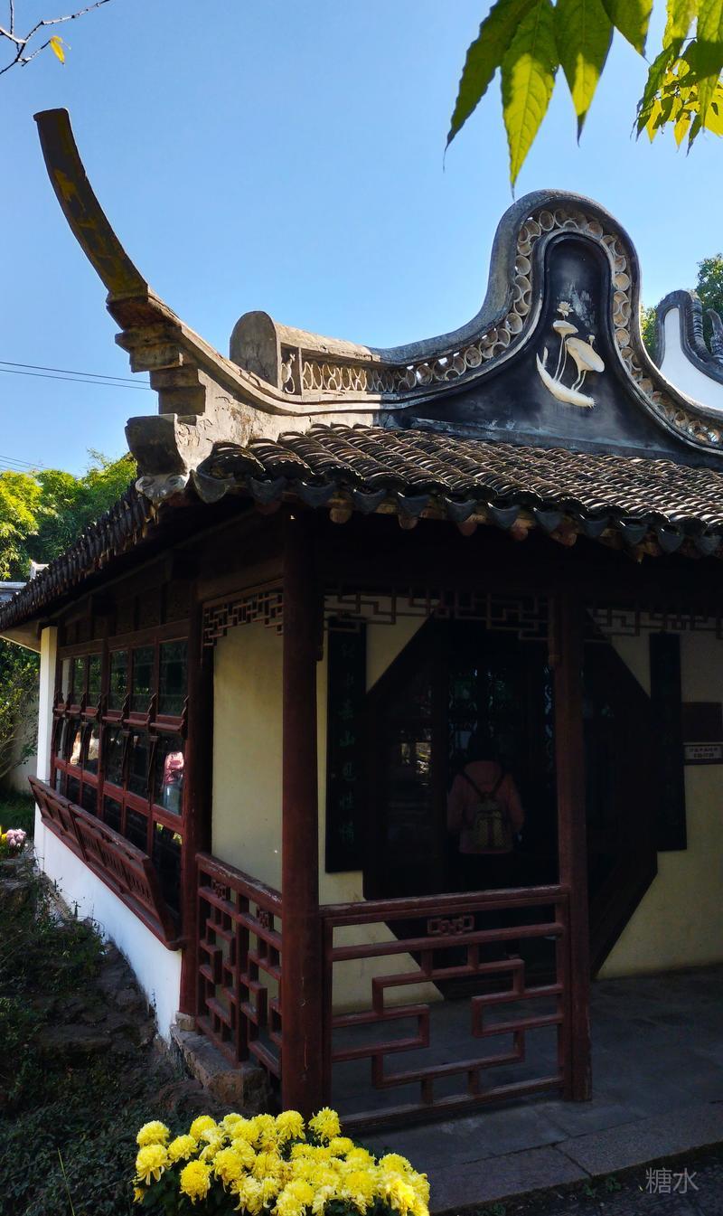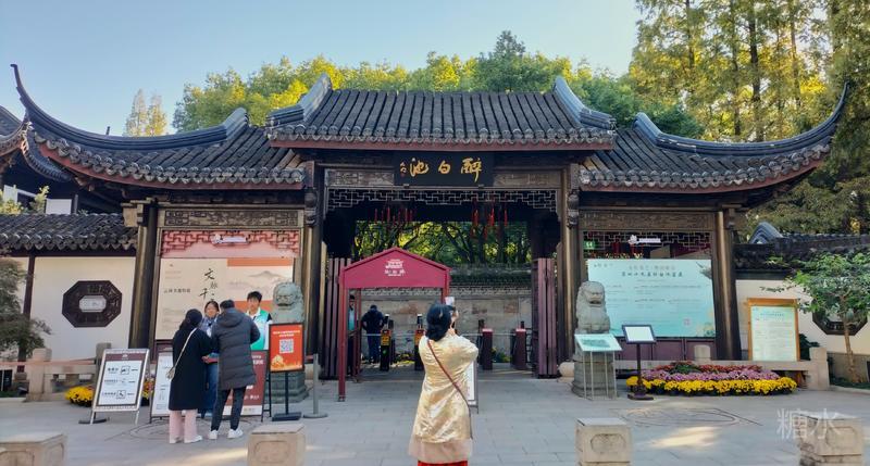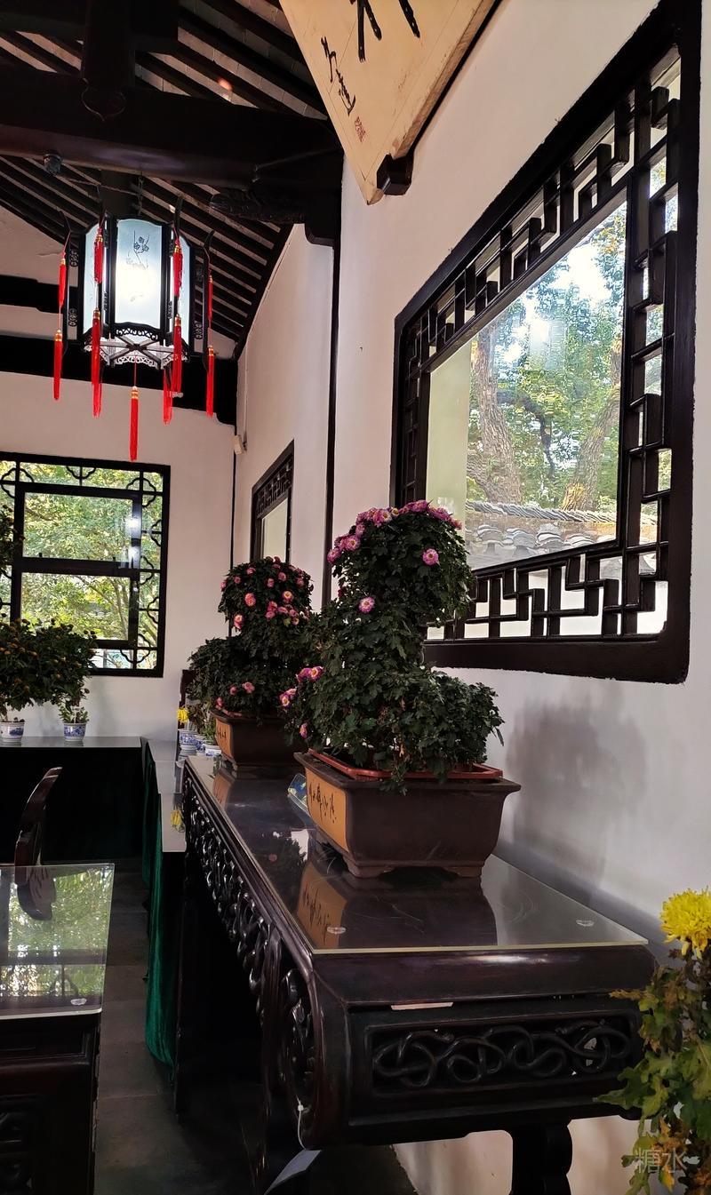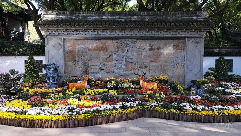 沿途秋菊芬芳,古迹甚多, 有四面厅、乐天轩、疑舫, 雪海堂、宝成楼、池上草堂等, 以及邦彦画刻、历史艺术碑廊、“十鹿九回头”石刻, 《赤壁赋》真迹石刻。 有树龄在三、四百年的古银杏、古樟树, 更有树龄百余年的古牡丹。