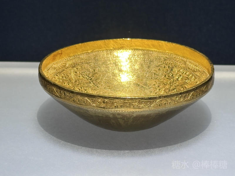 钵孟是佛教僧侣云游化缘时随身携带的盛装水或食物的食器,为比丘十八物之一,其材质、颜色、大小于佛教律典中均有定制。法门寺地宫共出士4件金银质地的钵盂。此件钵盂由纯金打造,内壁刻4只迦陵频伽,是唐代錾刻金银器中的精品。