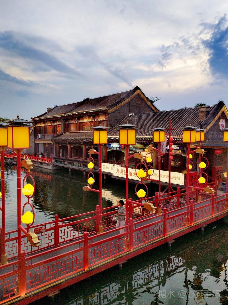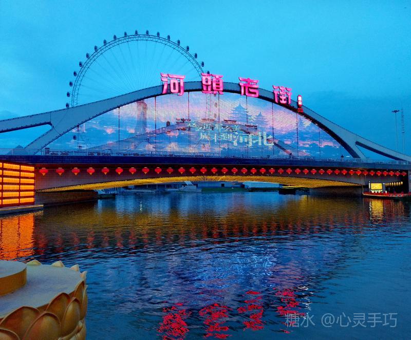 运河两岸的建筑,多采用明清风格的砖木结构,屋顶为硬山顶,走进了唐山河頭老街,古老的街道,河岸边高悬的大红灯笼,美食一条街,民俗风情,民间艺术表演,令人大开眼界惊叹不已。
