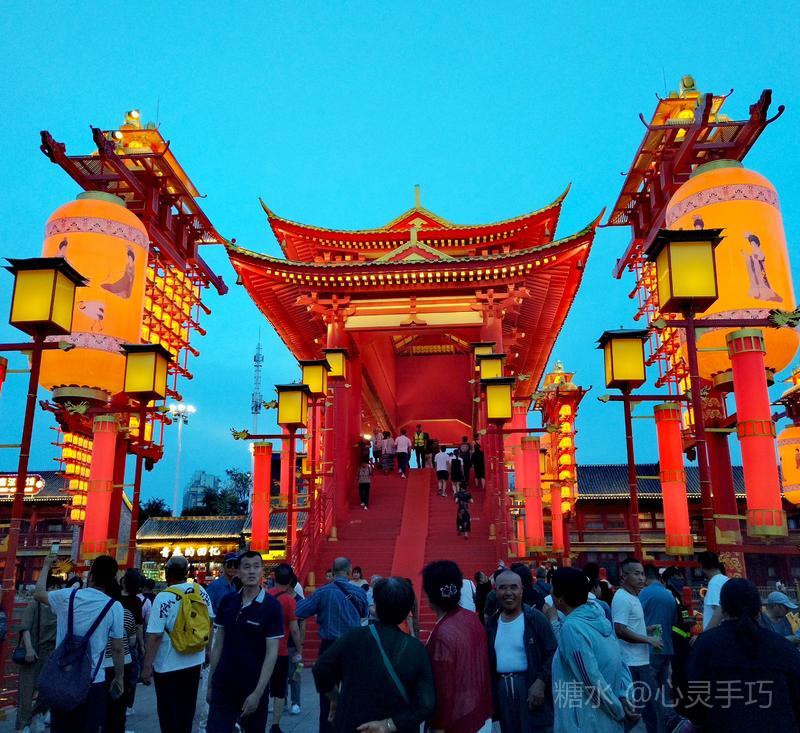 到了晚上七点钟,整个景区的灯光全部亮起来了,灯火辉煌,美不胜收。