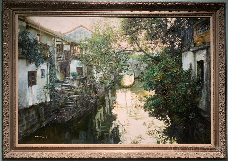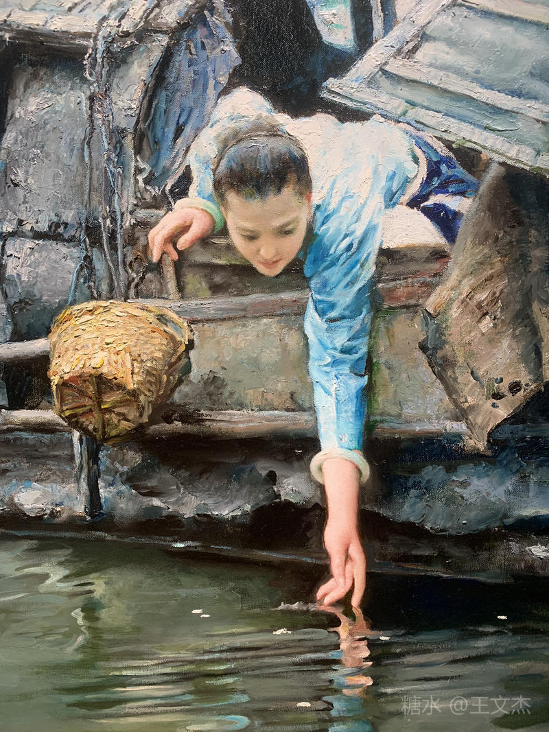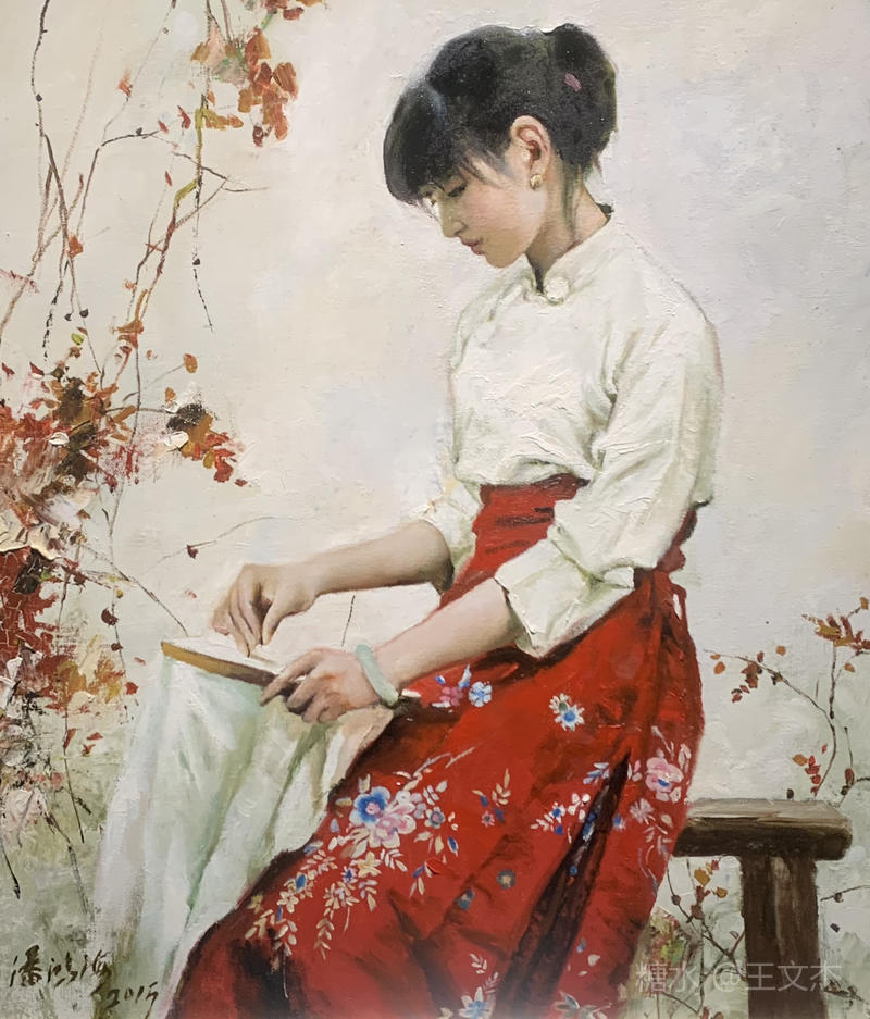 众所周知,潘鸿海先生以画江南水乡而著名。他笔下的水乡风光和人物有着唯美、温柔、婉约的诗意。看着他的画,仿佛能听见“欸乃一声山水绿”,仿佛能窥见浣衣女子心中的涟漪……