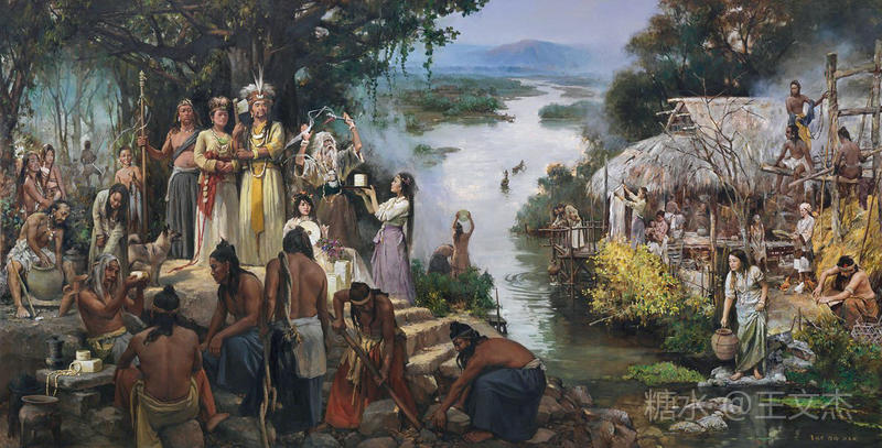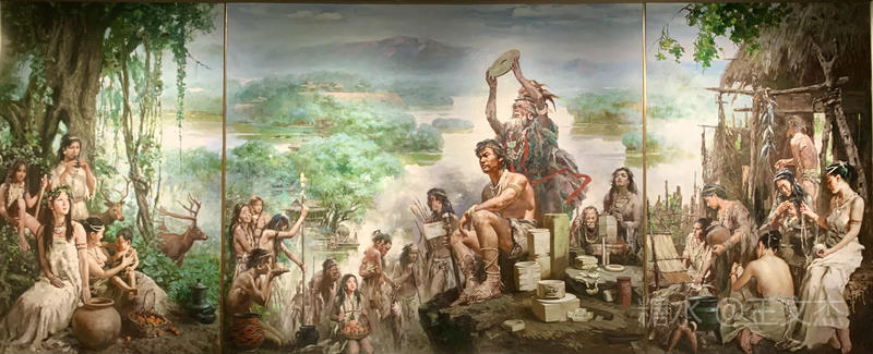 潘鸿海、陆琦、汪文斌《良渚文化》油画,270cm×530cm,2016年