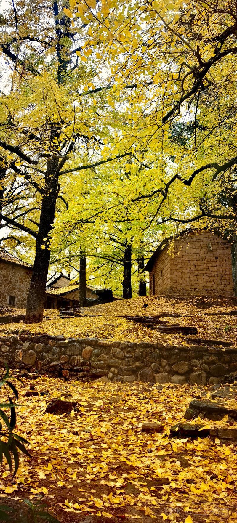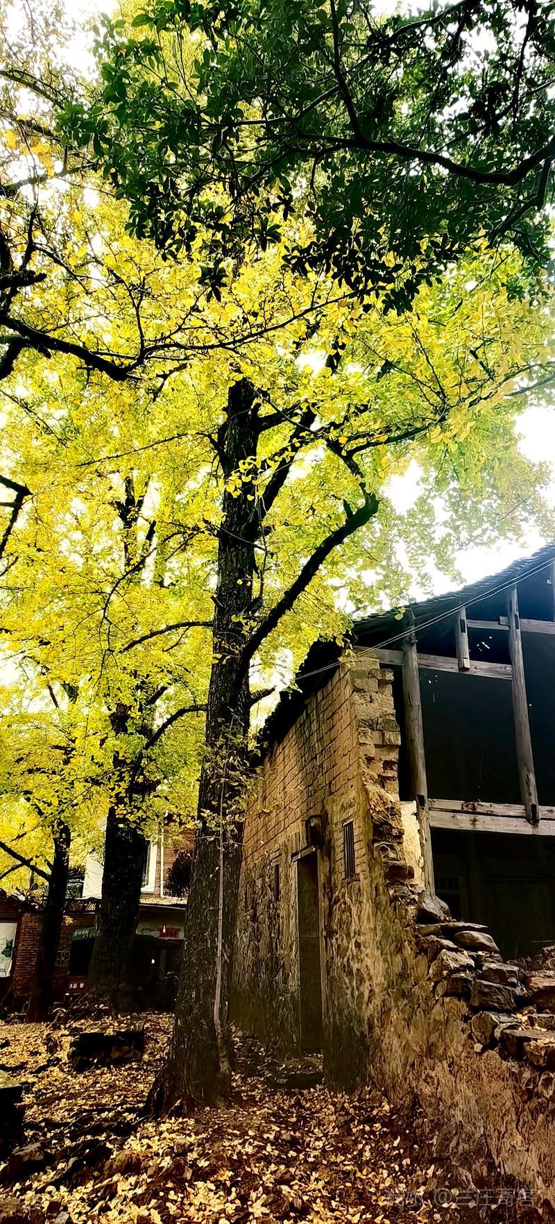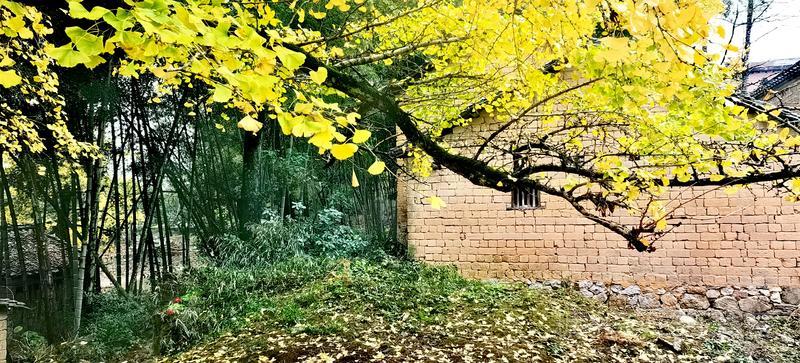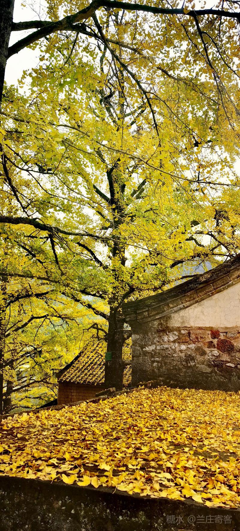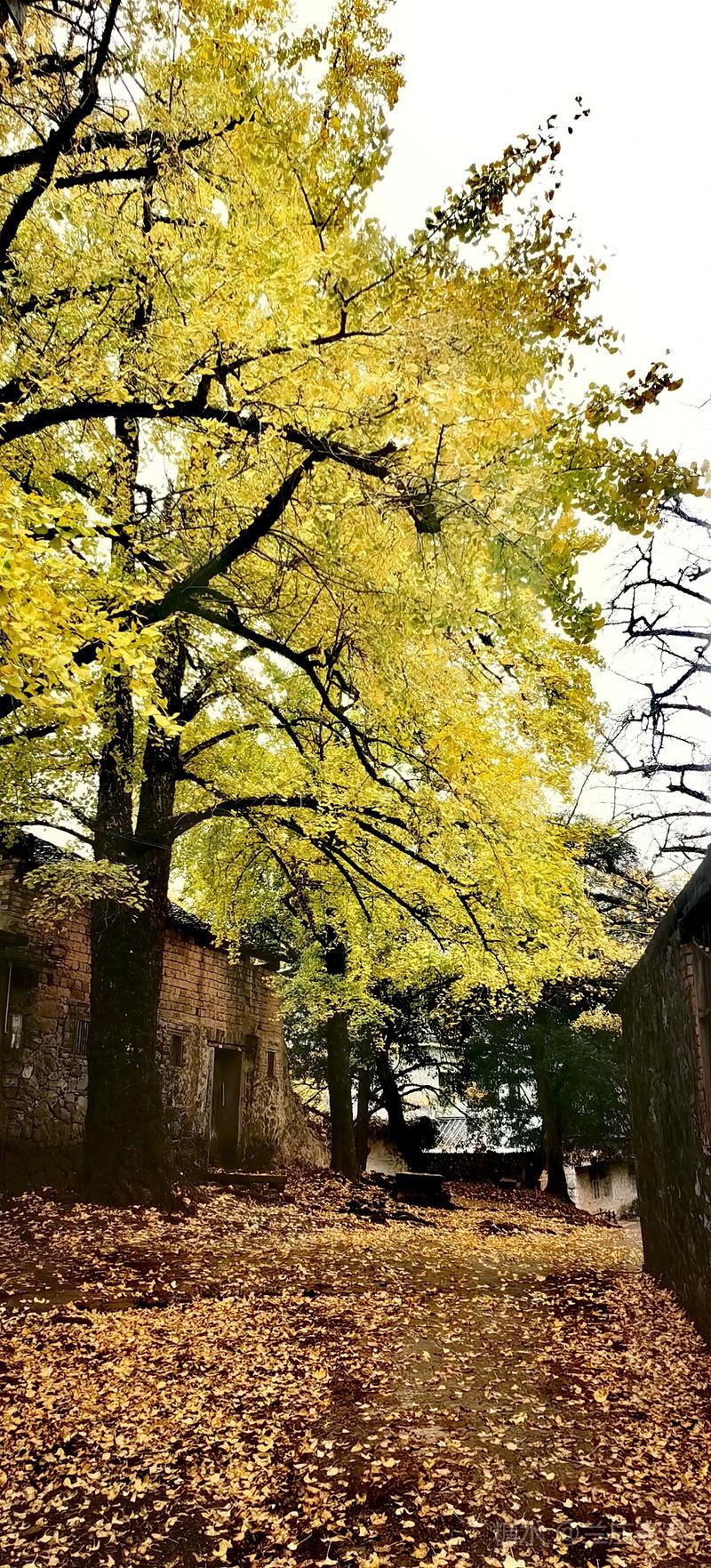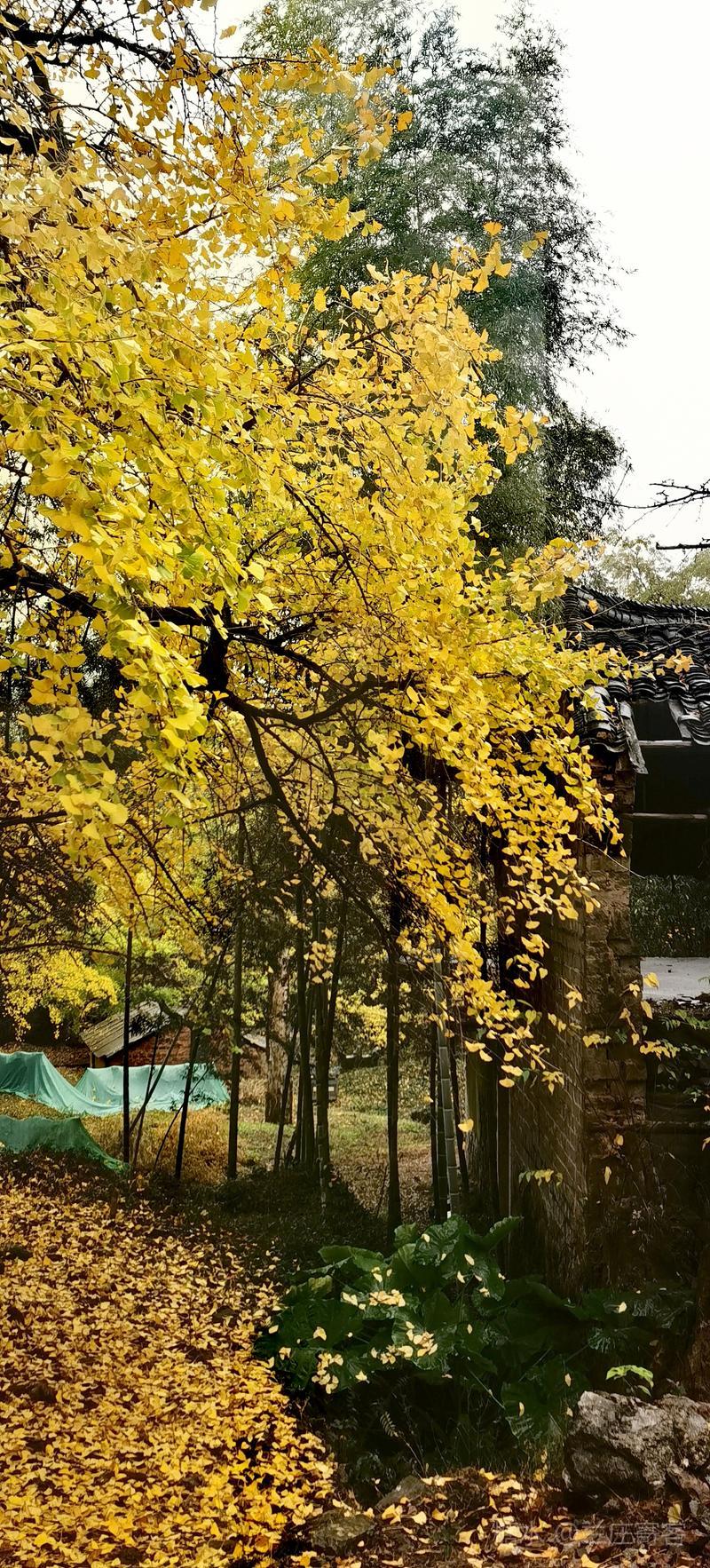 二、仲冬时令,灵川海洋乡气温骤降至8至10度,大片银杏适时黄透,唯见山村遍地金黄,美景怡人,特填词作记。 梅弄影·赏银杏有记 文/兰庄寄客 仲冬银杏,满树金辉映。 驰目山村胜景。雨歇风回,玉人姿弄影。 叶飘幽径,尽教禅心净。 古瓦泥墙相并。数缕弦音,行吟多逸兴。