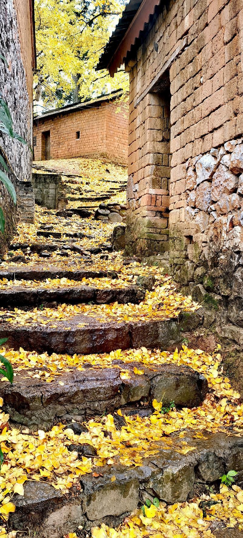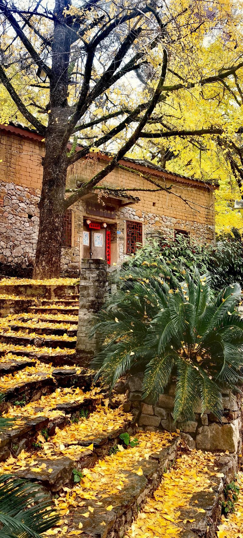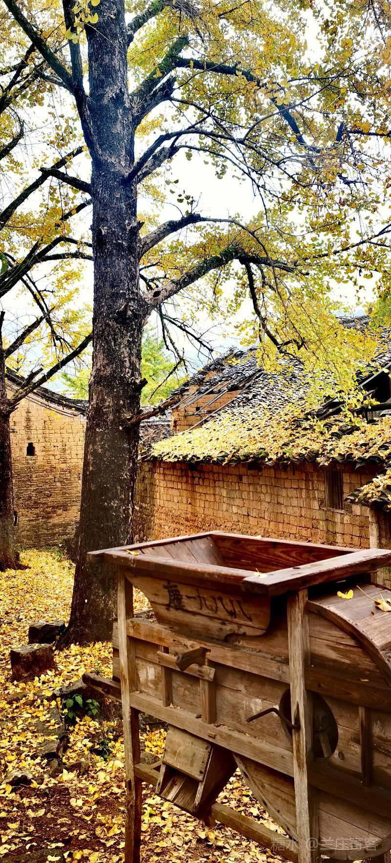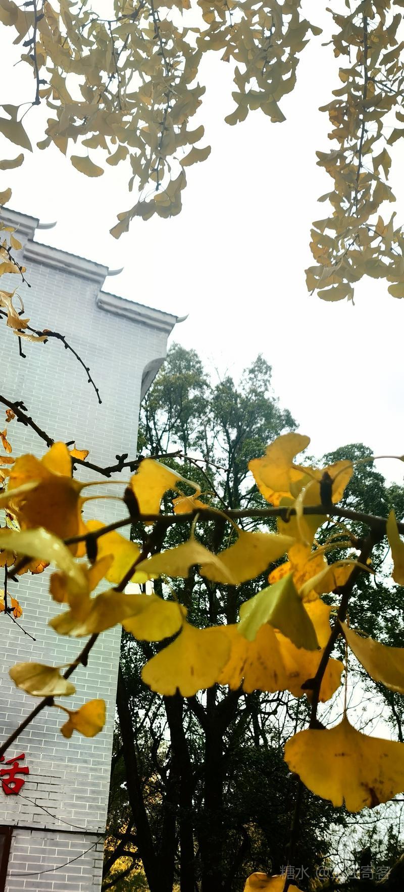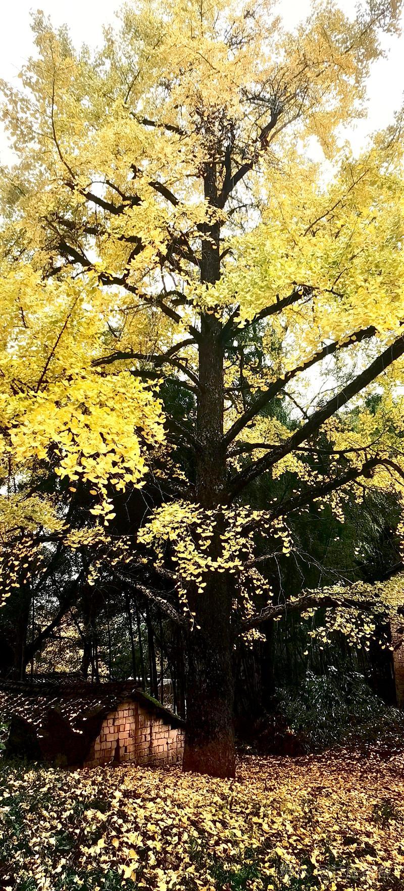 二、仲冬时令,灵川海洋乡气温骤降至8至10度,大片银杏适时黄透,唯见山村遍地金黄,美景怡人,特填词作记。 梅弄影·赏银杏有记 文/兰庄寄客 仲冬银杏,满树金辉映。 驰目山村胜景。雨歇风回,玉人姿弄影。 叶飘幽径,尽教禅心净。 古瓦泥墙相并。数缕弦音,行吟多逸兴。