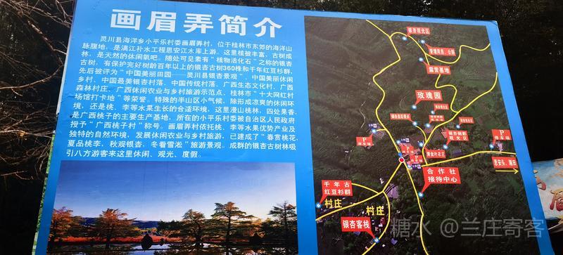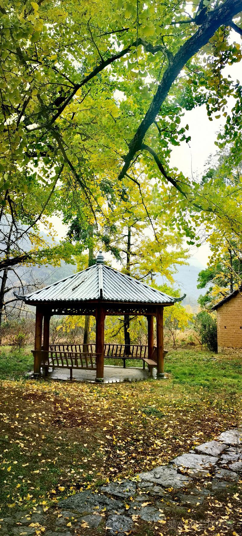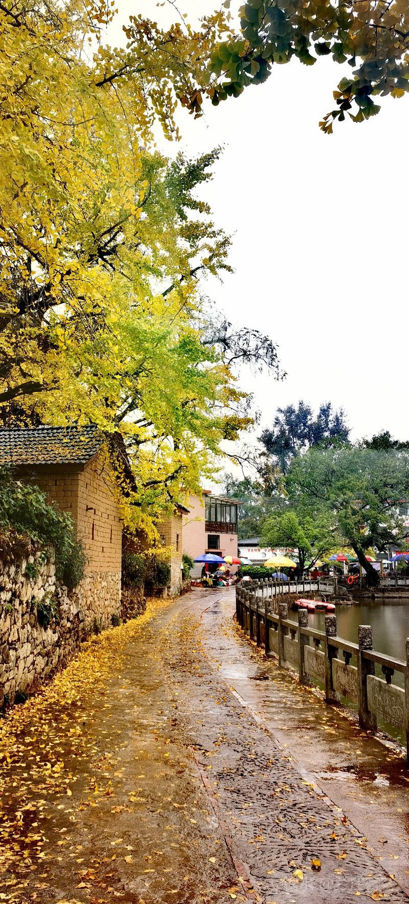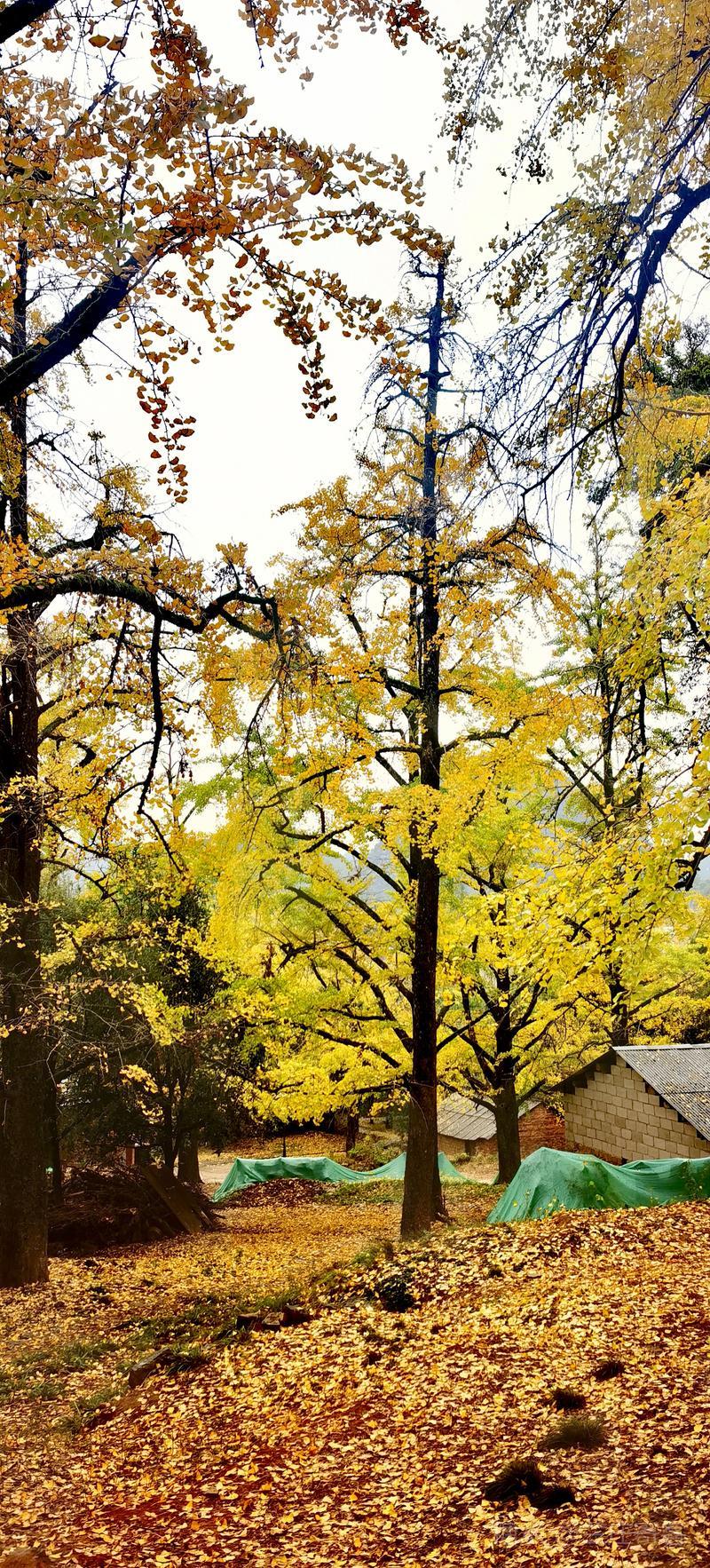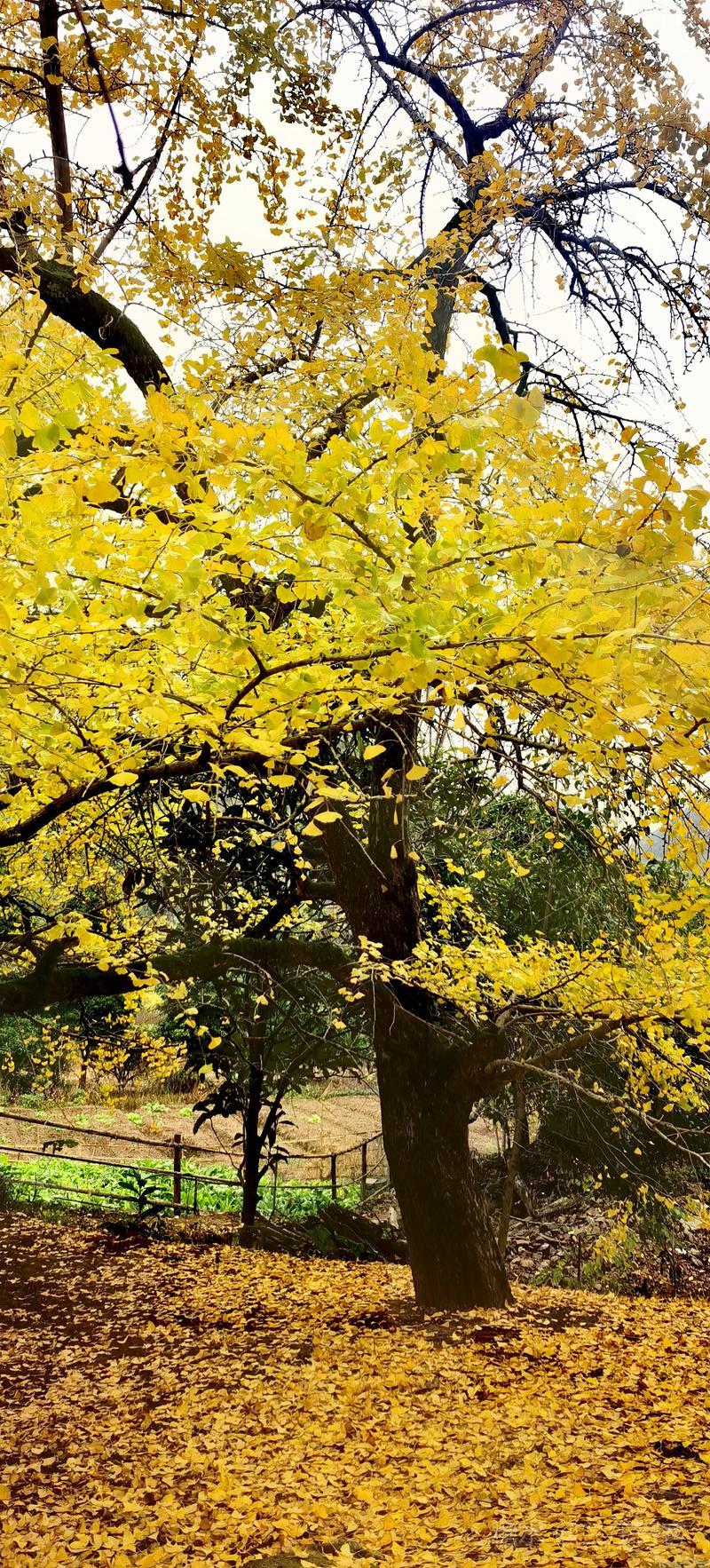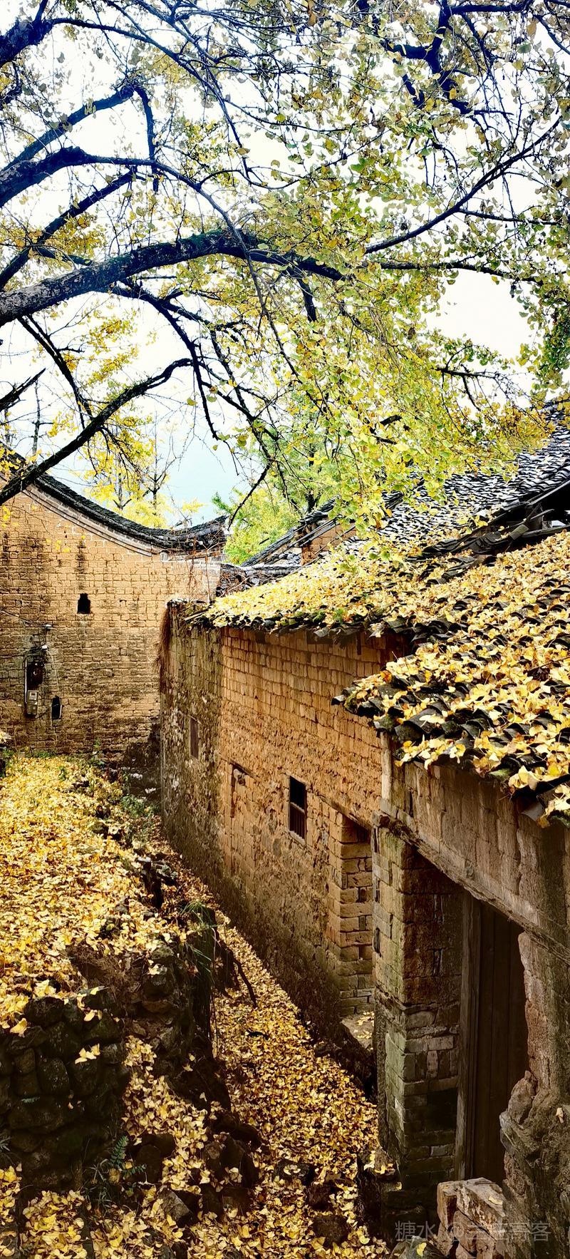 二、仲冬时令,灵川海洋乡气温骤降至8至10度,大片银杏适时黄透,唯见山村遍地金黄,美景怡人,特填词作记。 梅弄影·赏银杏有记 文/兰庄寄客 仲冬银杏,满树金辉映。 驰目山村胜景。雨歇风回,玉人姿弄影。 叶飘幽径,尽教禅心净。 古瓦泥墙相并。数缕弦音,行吟多逸兴。