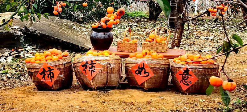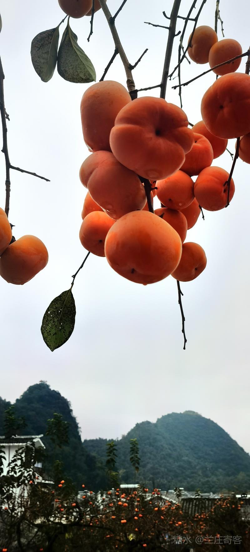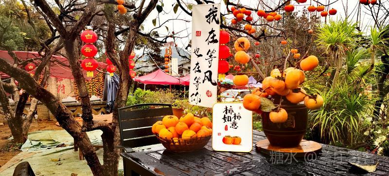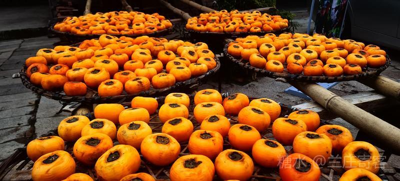 (一)、柿子在恭城已有1500多年的种植历史,而恭城最美的风光应属柿子丰收时。当月柿挂满枝头的景象与冬日的宁静相互映衬,构成了一幅独特的田园风光画卷。游览“中国第一月柿之乡”红岩村,特步韵宋代杨万里《谢赵行之惠霜柿》赋诗作记。 五律·红岩月柿醉人来 文/兰庄寄客 远客寻幽至,寒乌未散场。 连云千载柿,垂果数重霜。 举手期新摘,低眉欲饱尝。 画屏应醉我,此别复何当? 注:何当犹何日、何时。 《谢赵行之惠霜柿》 宋·杨万里 红叶曾题字,乌椑昔擅场。 冻乾千颗蜜,尚带一林霜。 核有都无底,吾衰喜细尝。 惭无琼玖句,报惠不相当。