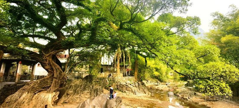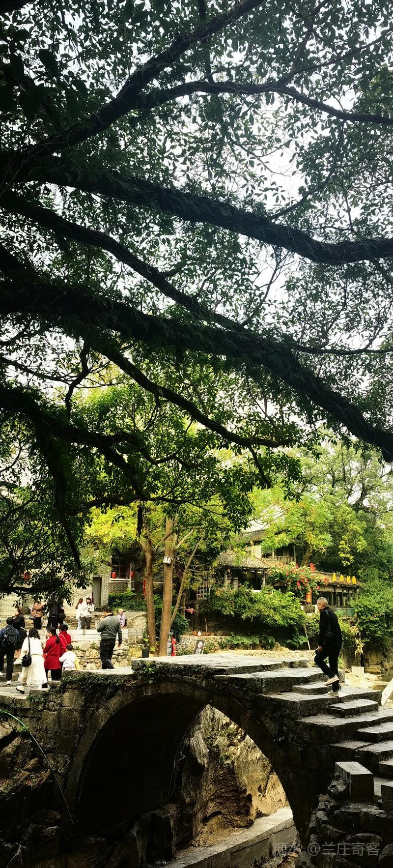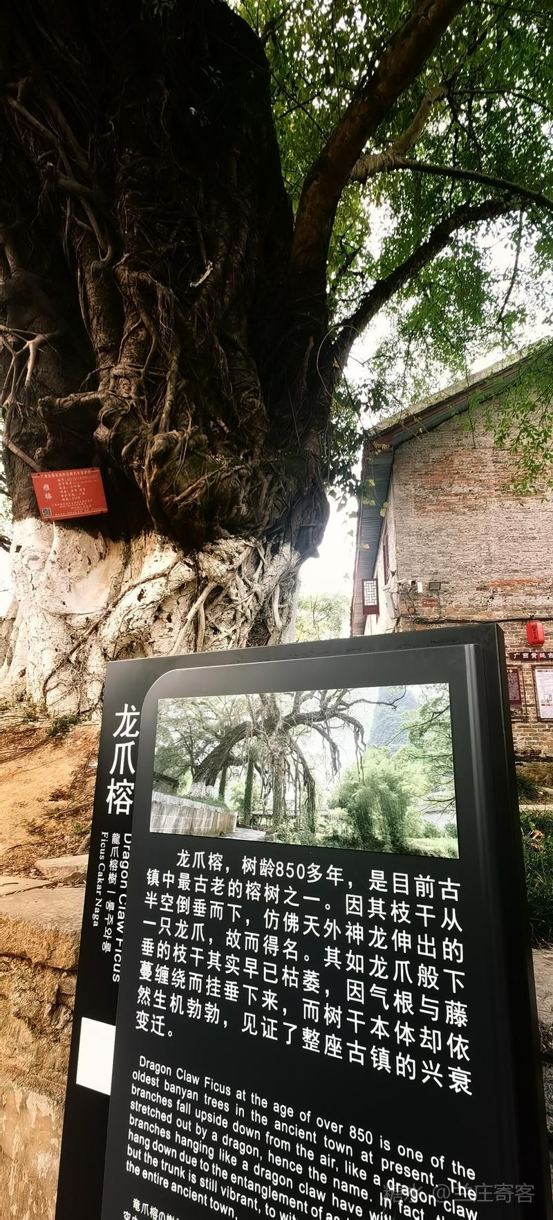 三、“赏红醉黄”归来途经黄姚古镇,特撰联赋诗作记。 (一)、题黄姚古镇850年龙爪榕联/兰庄寄客 龙爪探云,岁月驮来千古韵; 榕荫盖地,风华占尽四时春。
