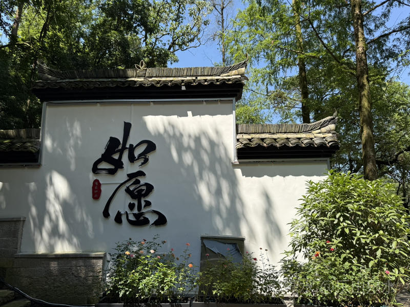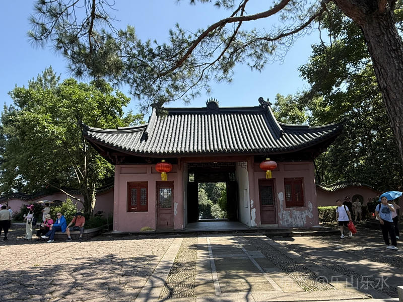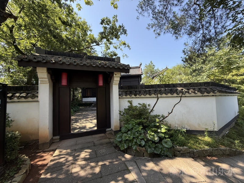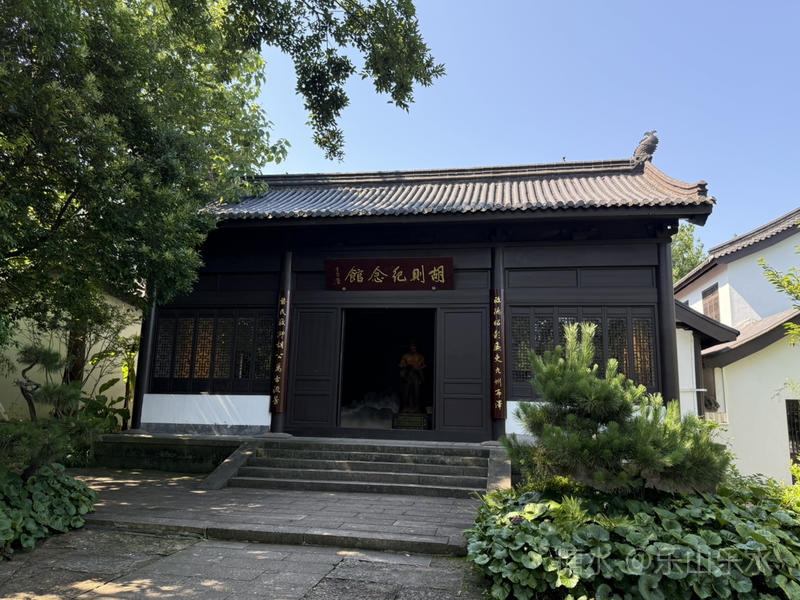 出站后,沿着游步道前行百余米,绿树掩映下,粉墙黛瓦中,漆黑的大门内是胡则纪念馆。
