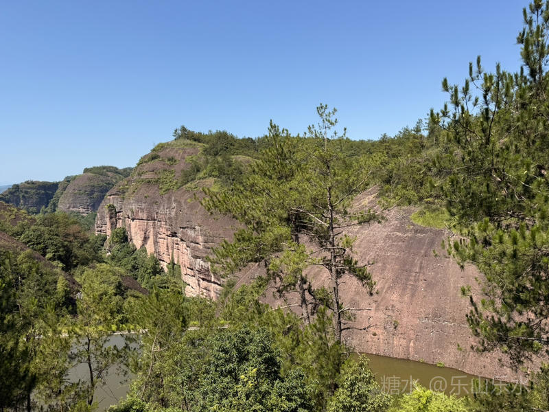我们走过长达数十米的“天桥”跨越了峡谷,左拐进入对面山中紧贴峭壁的一条栈道,虽然脚下深不可测,但是峡谷中“赤壁丹霞”呈现出来的奇特景观景色,让我们忘掉了胆怯,赏心悦目地走出了栈道,来到了另一片天地。