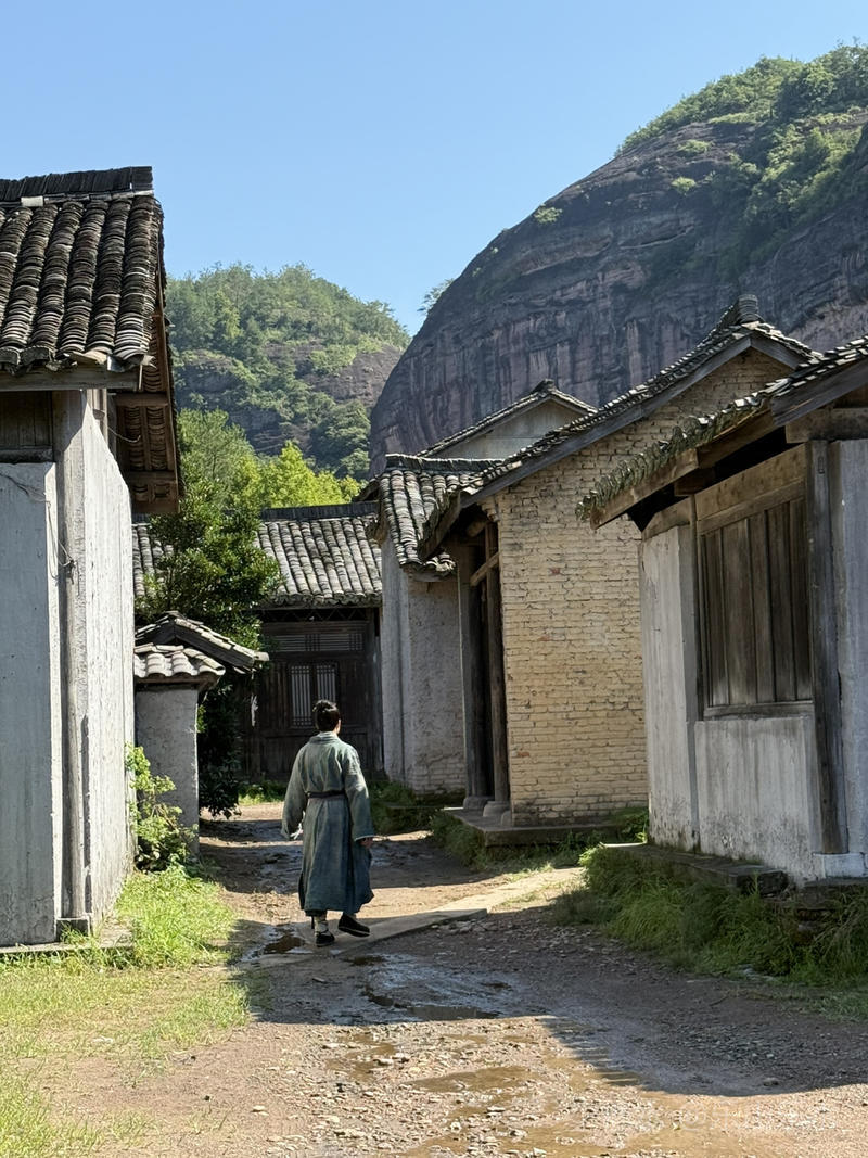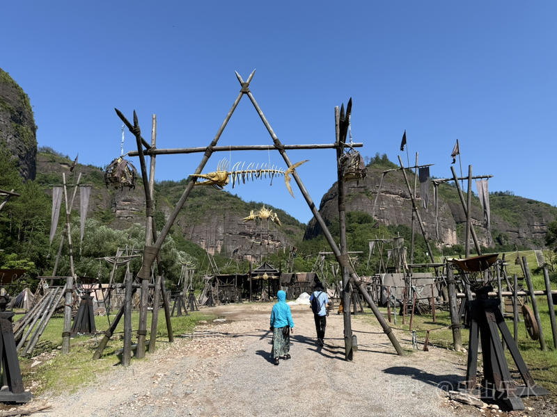 从方岩南门进入景区后,映入眼帘的是处于奇特的山崖之下的仿古村寨。寨内旗杆高耸入云,古朴建筑,错落有致。这里曾经是《花千骨》、《芈月传》、《瑯琊榜》等电视剧的取景地之一。