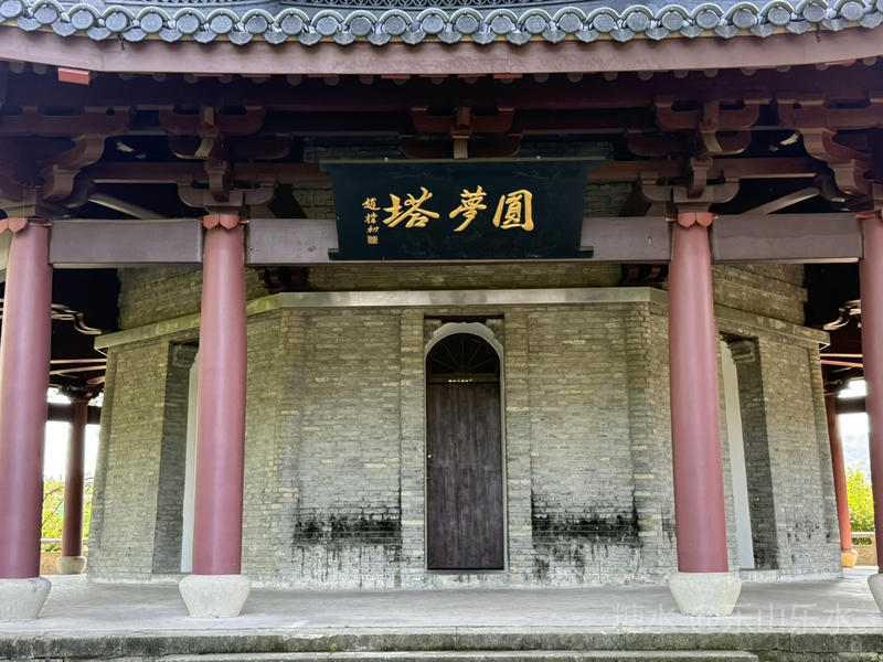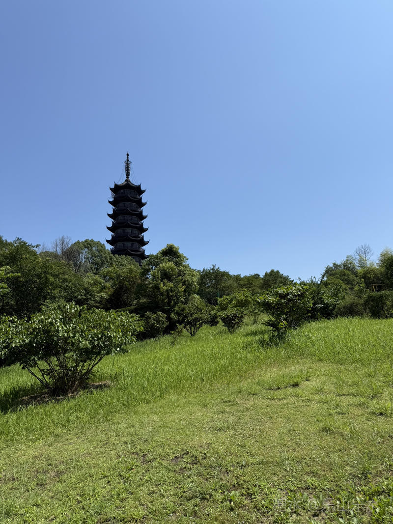 出纪念馆往前走,漫山遍野,一片葱绿。幽静的山中,鸟鸣啾啾,泉水叮咚,不远处一座宝塔非常醒目地矗立在山中,展现出其优美的身姿。