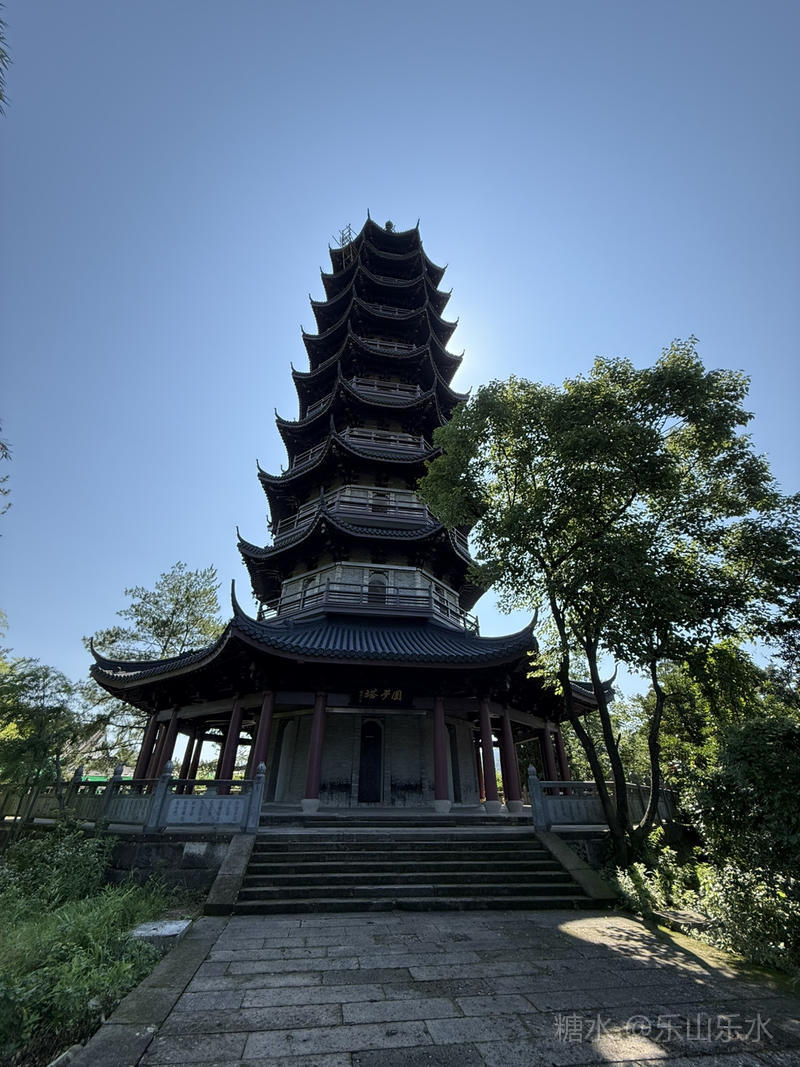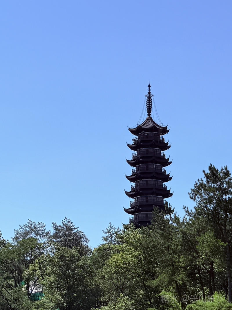 我们来到塔下观望,只见这座九层八角楼阁式仿宋建筑,塔身笔直而立,飞檐翘角,线条流畅,视觉完美。