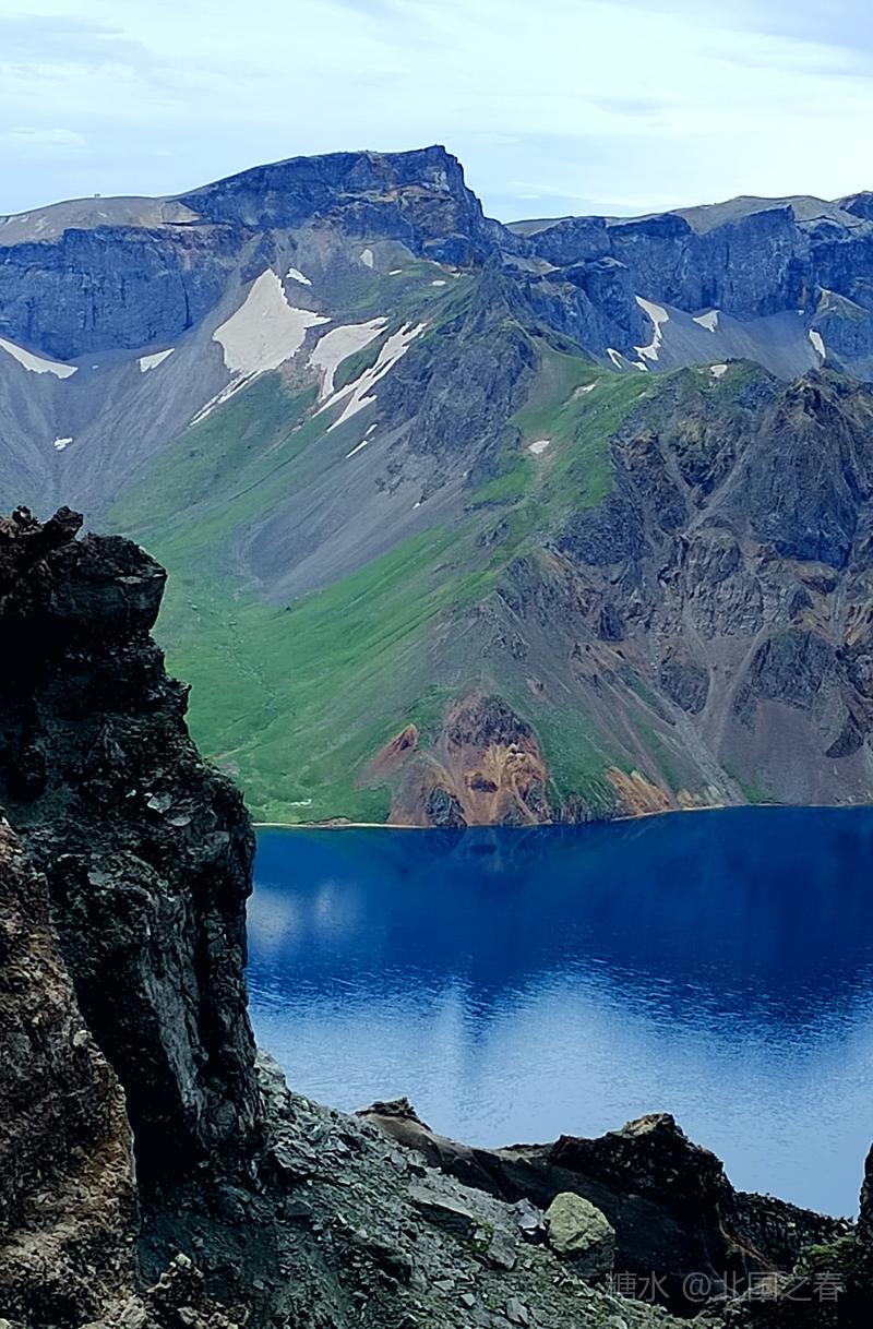 天池犹似瑶池 离天近在咫尺 蓝天碧水如镜 前行在此步止