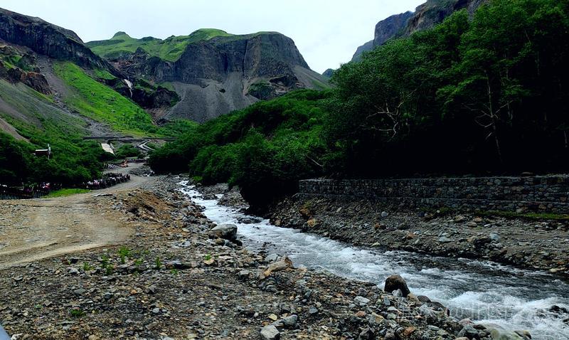 天池北侧有一缺口,古称闼门,水北流称乘槎河(又称通天河)。该河夹流在天豁峰与龙门峰之间,全长1250米,在其尽头形成高达68米的长白瀑布,瀑布下有长白温泉,均与二道白河相通。