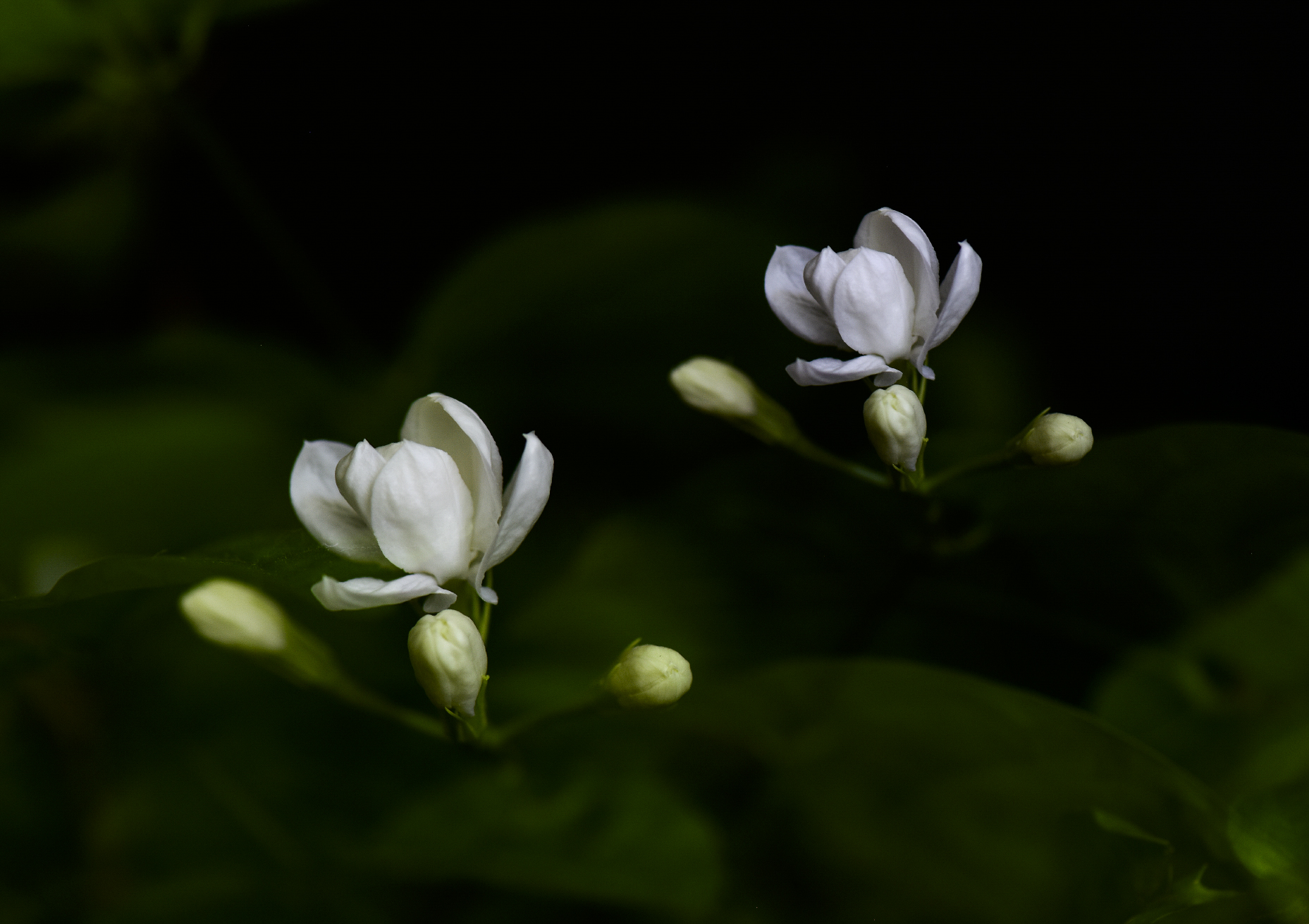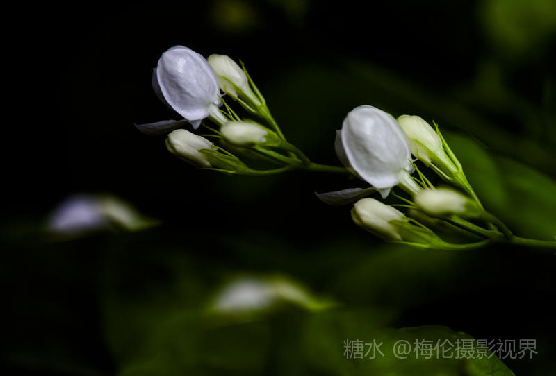 在拍摄茉莉花花朵时,微距镜头能将这些细节清晰地展现出来,给人一种耳目一新的感觉。