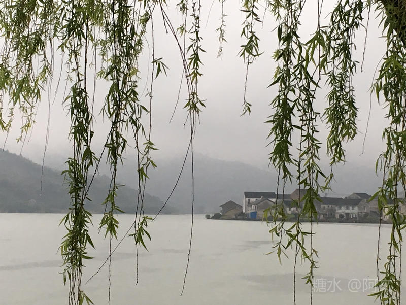 过杜湖湖中路的时候,雨忽然大了起来。两岸的堤柳垂下了一幕幕的雨帘,风却像无形的纤手,撩开帘角,看去:近处的湖面是烟蒙的,远处的山色也是烟蒙的;湖上无舟,不远处卧在湖边的村居却如舟。