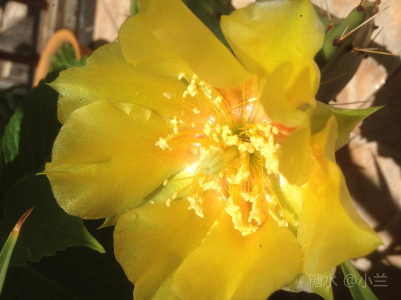 仙人掌开花了,开花时间早上八点钟至下午四点就败了,与昙花时间相反,昙花晚上八点钟至夜间十二点就败了!花期短暂。