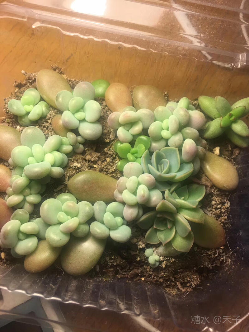 【桃之卵(桃蛋)培植记】 作者:晓怀 计划赶不上形势,前几天还穿着羽绒衫,今天出去可以換单衣衬衫了。一早窗边透出曙光,一个大晴天啊!养花人的福音,今天可以移栽上盆了。 去年秋天进了几株桃蛋,最早是从日本引进的,有个东瀛味道十足的名字,叫桃之卵。到了华夏大地,人见其浑圆饱满粉嫩的模样,个个爱不释手。最贵时我进了一株小小的两个头笼,加起来没有十片叶子,开价45元。这货不好弄,没多久就化水仙逝啦。去年开始忽然大批上市,估计是服了水土,一商业化,价格就下降到十元钱可以买一堆。不过还是难弄,不要看它圆圆粉粉的一脸萌样,要养出理想状态,功夫不是一眼眼的。市面上一多,立马从深闺进入寻常百姓家,这名字也从文文雅雅的‘桃之卵’顺口变成市井味的“桃蛋”了,网上还有简称“蛋蛋”或直接叫“蛋”的,那腔调与网络语言里很黄很暴力的那些文字简直等同,文人雅士见了不禁会大摇其头,直呼太俗了。 我的那些是从去年买进来时,把一碰就掉的叶片(也是圆圆滚滚的)放在塑料盒里做叶插繁殖的。盒子里铺上椰丝泥土的混合物,一片片放好,浇上少许水,保持温度湿度,经过漫长的秋冬,到今春已经时密密麻麻一大片萌萌的小苗,长到三四厘米就可以分盆了。后面五张照片就是分后的样子,看看是不是又圆又粉又萌! 这桃蛋真的不好弄,反正魔都的天气生来就是与之作对的。夏天太热,冬天太冷,梅雨太湿,春秋太短,好在退休在家时间多,没事就搬进搬出制造小气候,看着新叶慢慢萌出,变圆上色膨大,真是不辞辛苦,乐在其中。这些图在“多肉植物”APP里一发表果然引来不少赞,看来同好的还不少。 春日慈慈,莺飞草长,朋友相邀去看樱花,又说是顾村公园的好,忽然来电说有人去过了,没开。那也好,自己在家莳花养草也别有一番乐趣的。待到全部弄好搬上窗台,一抬头,我家隔壁的上海植物园上空几个风筝扶摇直上蓝天,暖风拂面,令人心醉。我想过几天顾村的樱花大概就要开的吧!