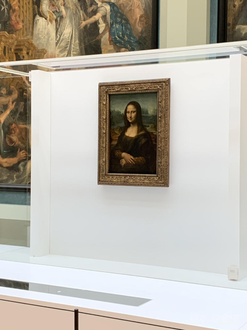 在法国巴黎,去卢浮宫看世界知名度最高最神秘的一幅画,这是最伟大的画家、文艺复兴的完美代表达芬奇创作的油画《蒙娜丽莎》。门口安检十分严,排队十分长,终于来到这幅作品前,看真迹就是不一样,油画装在玻璃柜中,四周十多个保安和工作人员,我静静地盯着这幅画看一下,发现当你盯着她的微笑看,她的微笑就会消失,而当你视线稍微离开一点,蒙娜丽莎又开始微笑。